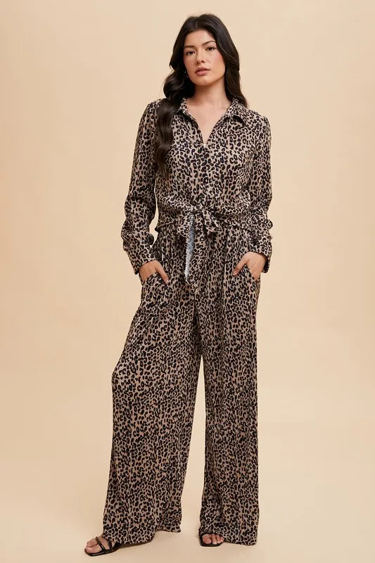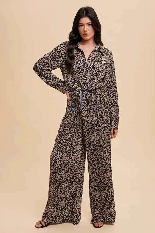 Annie Wear Leopard Plisse Lounge Wide Pants