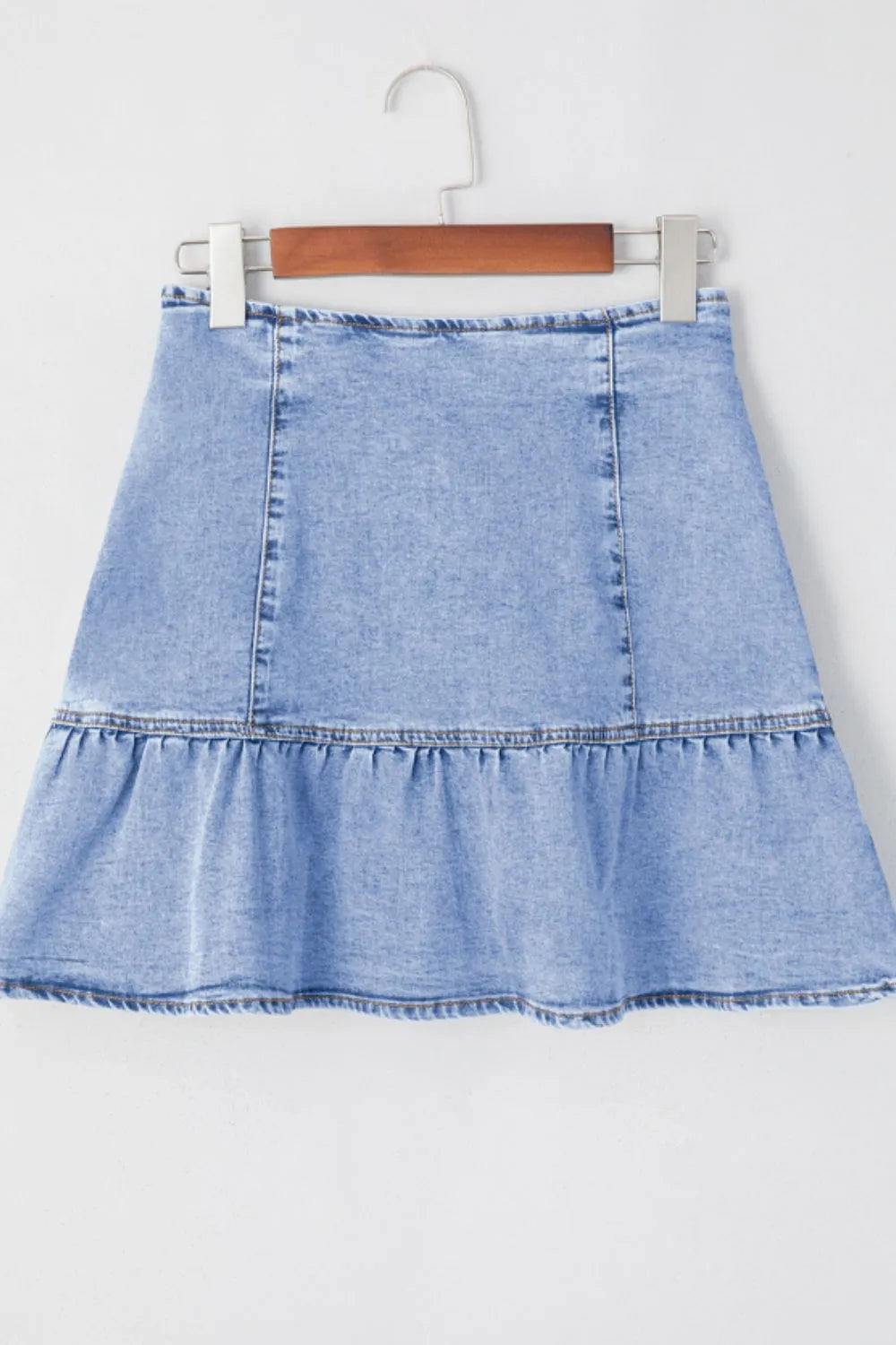 Asymmetric Ruffle Overlay Denim Mini Skirt