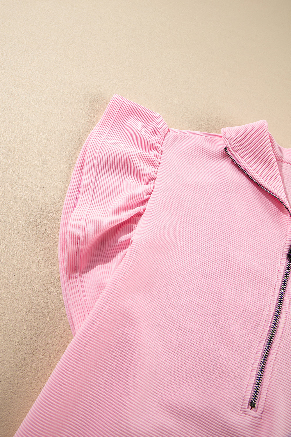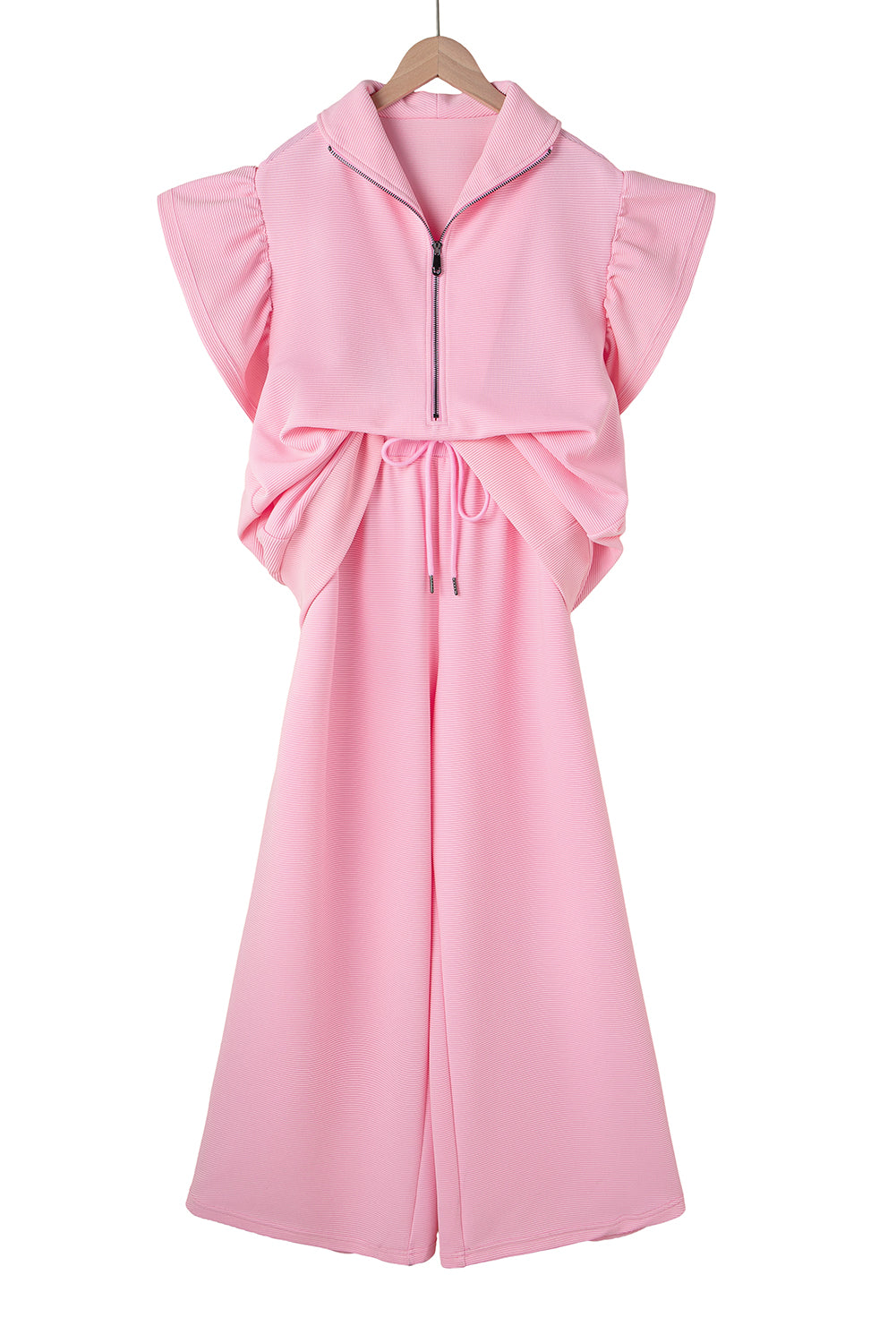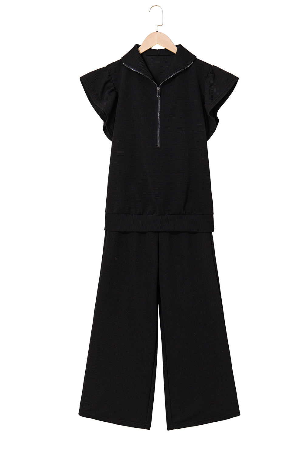 Beau Blue Textured Ruffle Sleeve Zipped Top and Wide Leg Pants Set