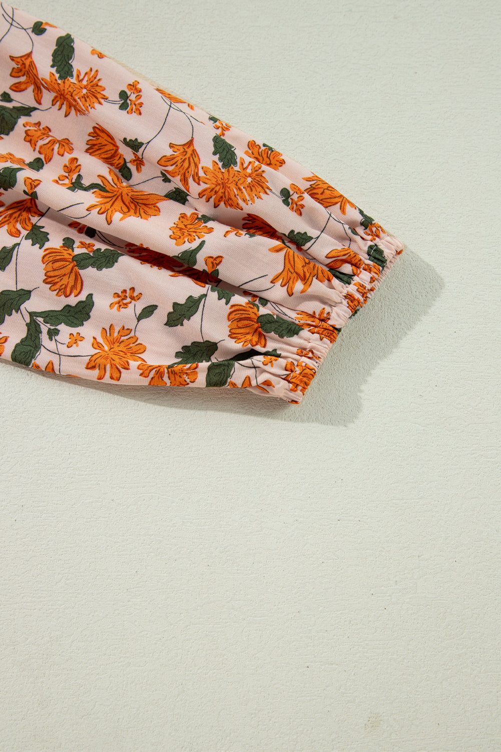 Beige Floral Smocked V Neck Bubble Sleeve Babydoll Dress