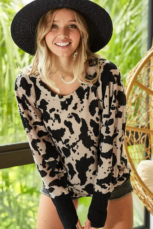 BiBi Dalmatian Print Knit Top With Thumb Opening Cuffs