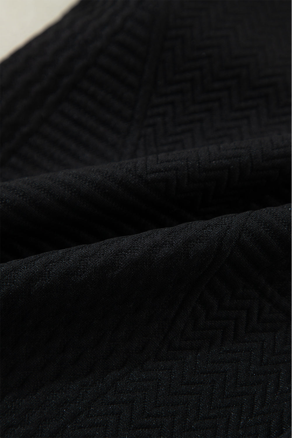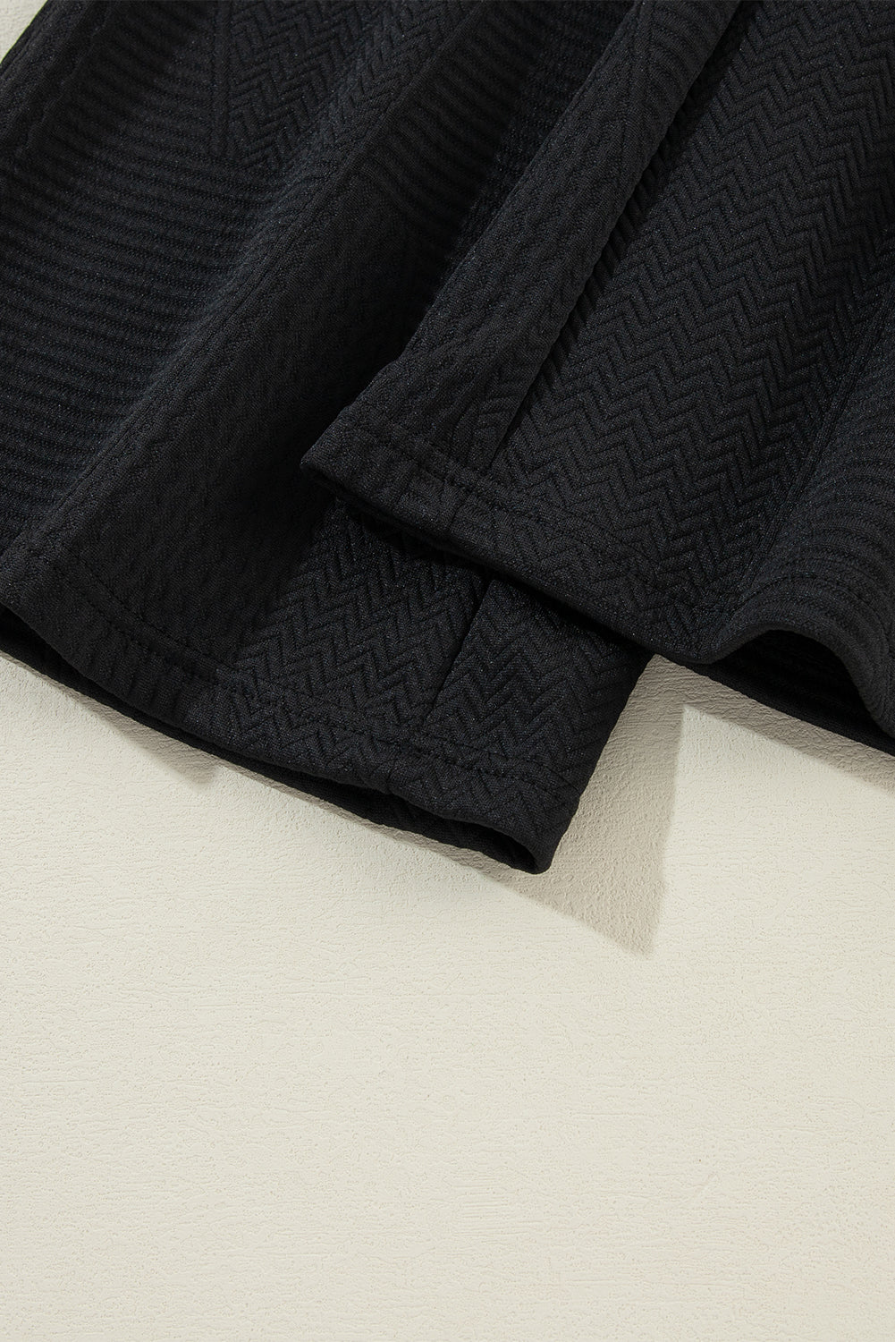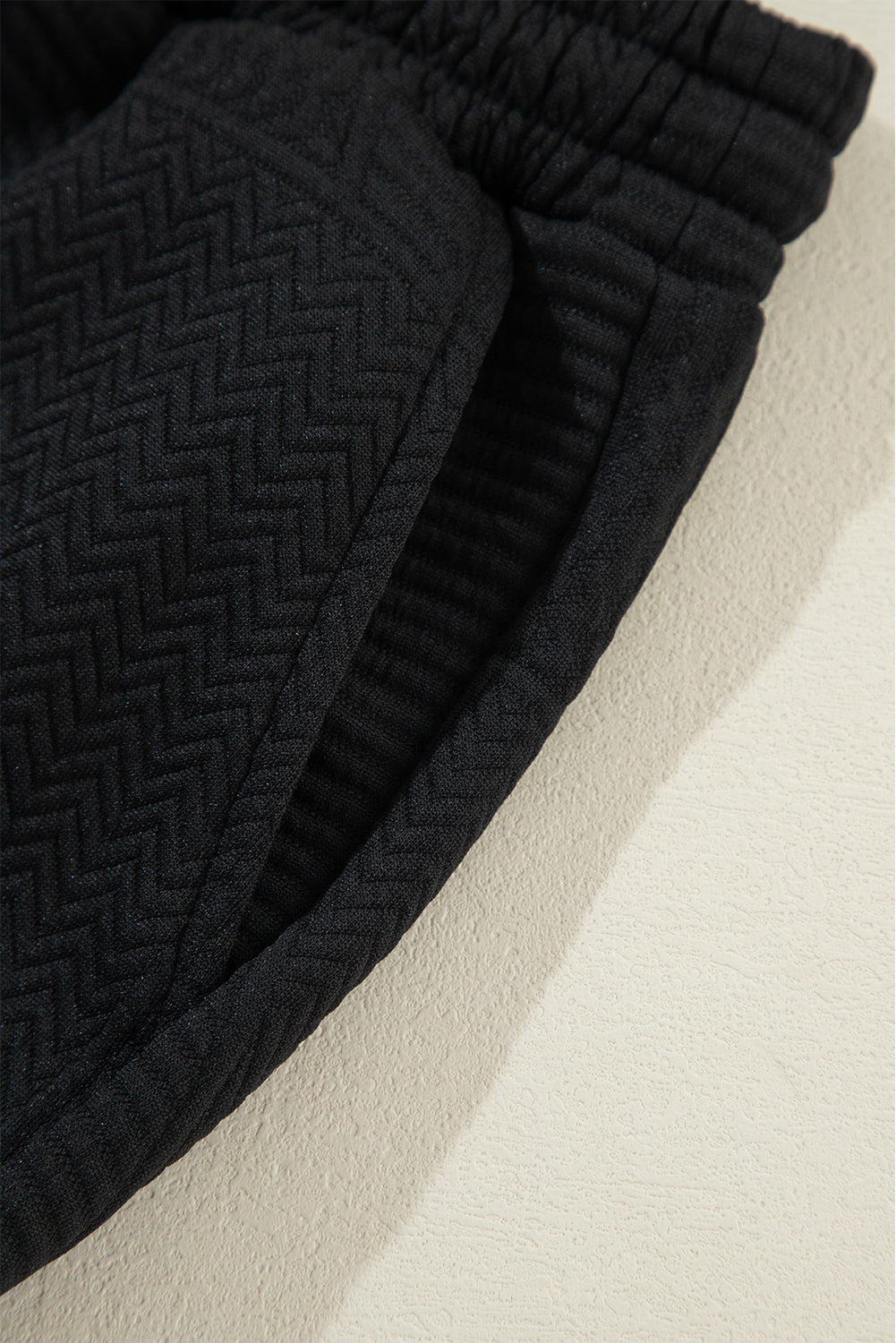 Black Textured Ruffle Summer Top and Drawstring Pants Set