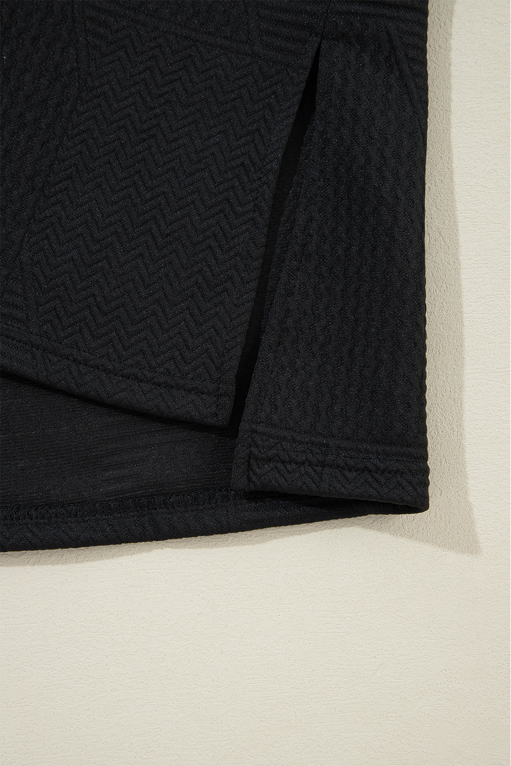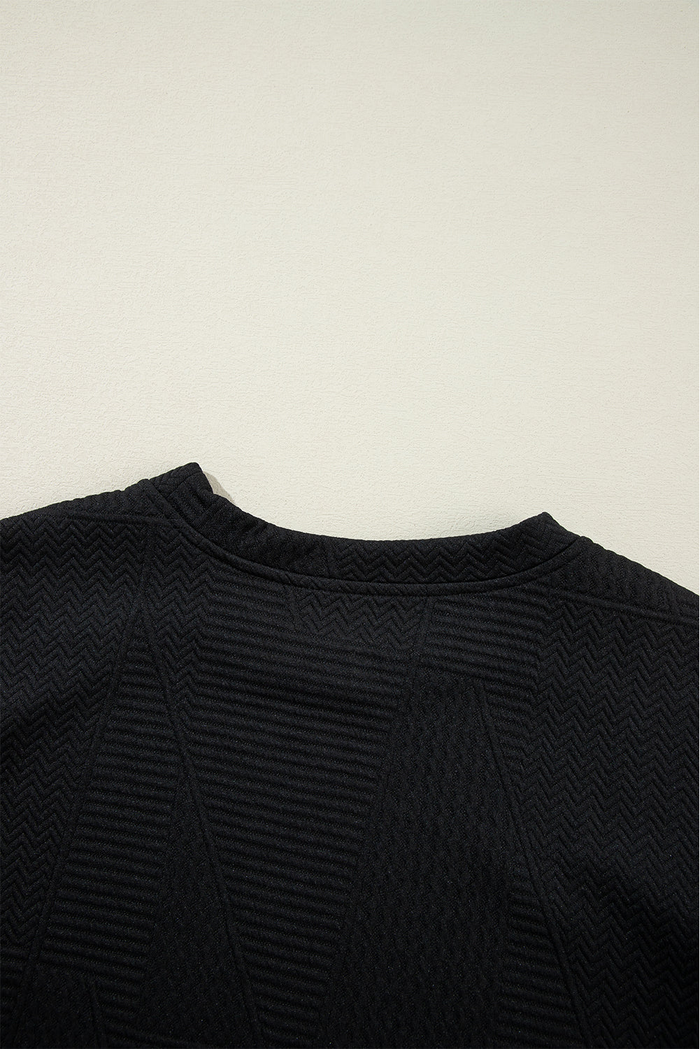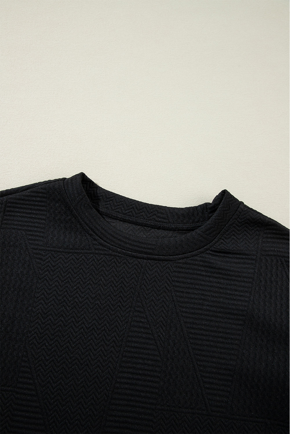 Black Textured Ruffle Summer Top and Drawstring Pants Set