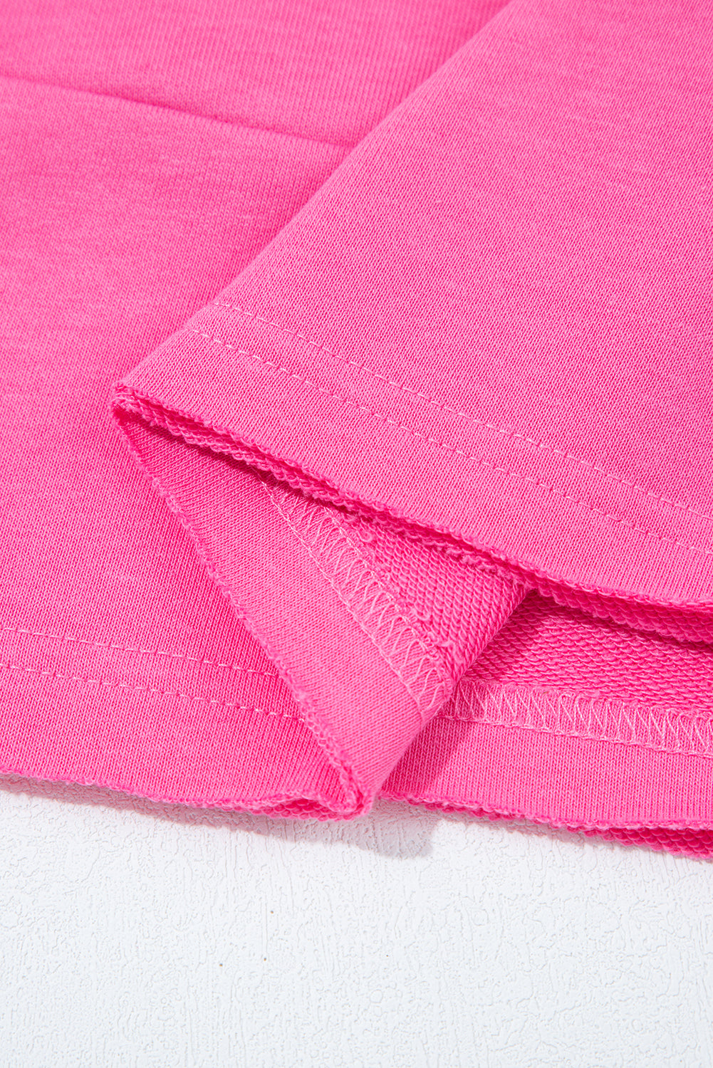Bright Pink Raw Edge Henley Pullover and Jogger Pants Set
