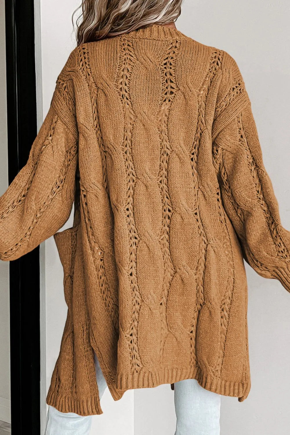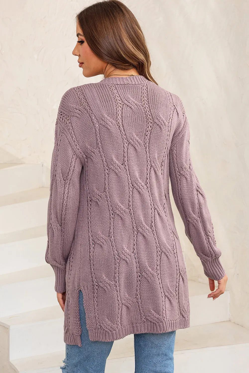 Cable-Knit Dropped Shoulder Slit Cardigan