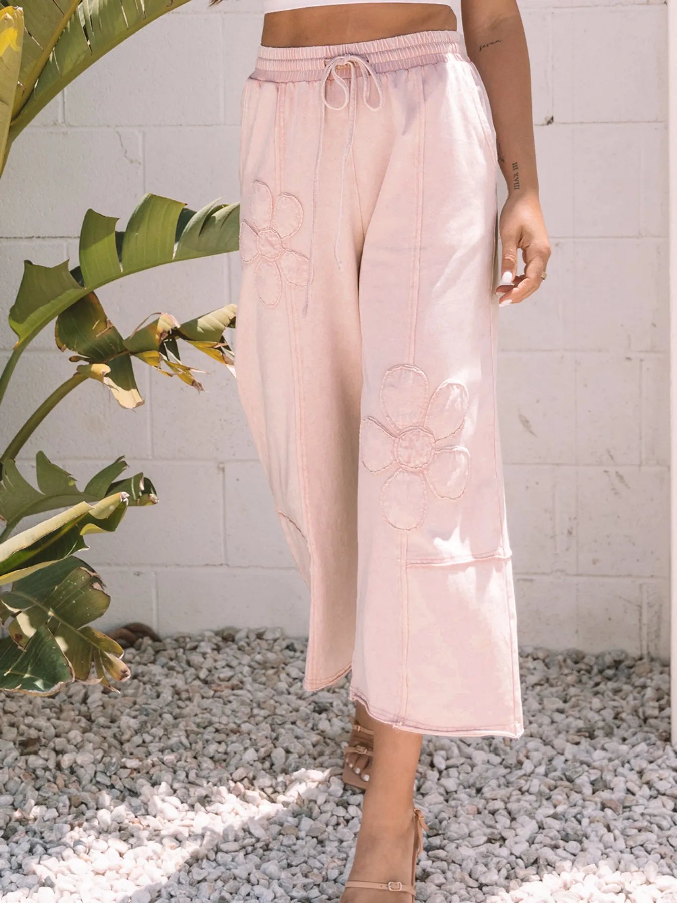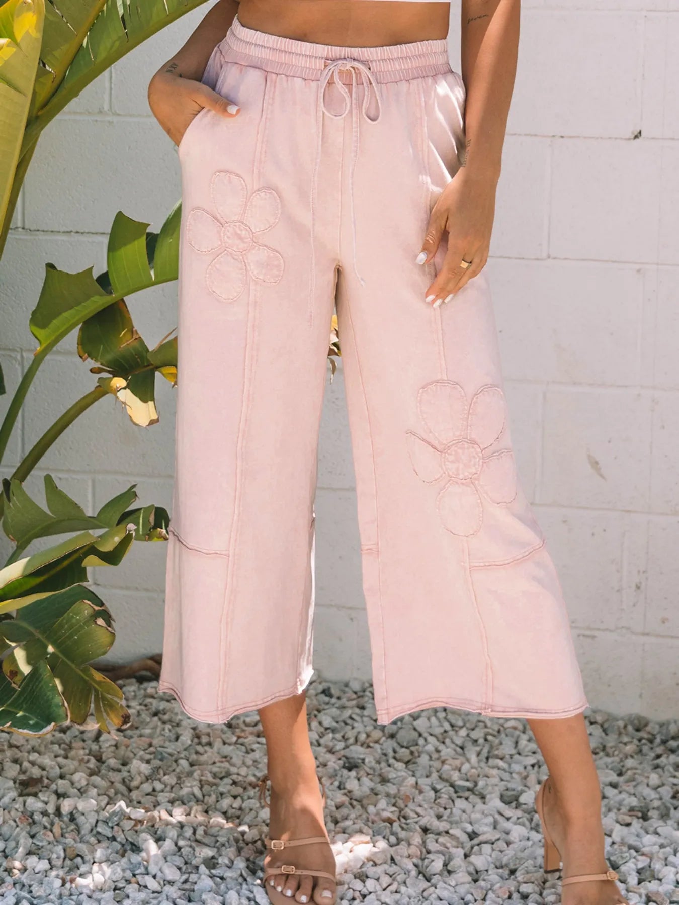 Floral Wide Leg Crop Pants with Drawstring Waistband
