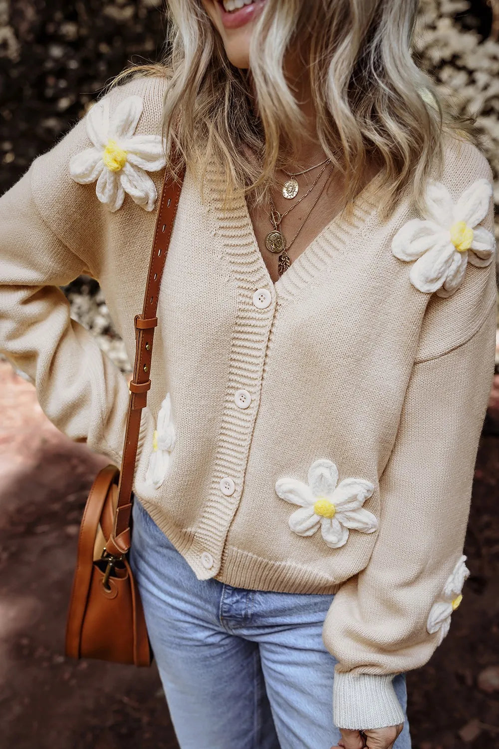 Flower Dropped Shoulder Long Sleeve Cardigan