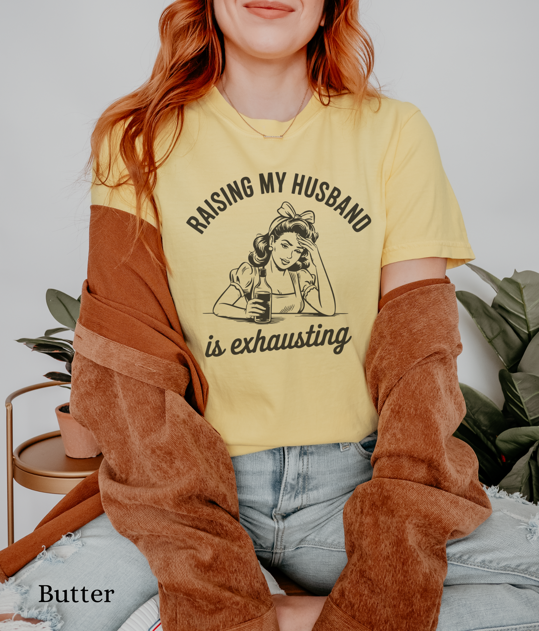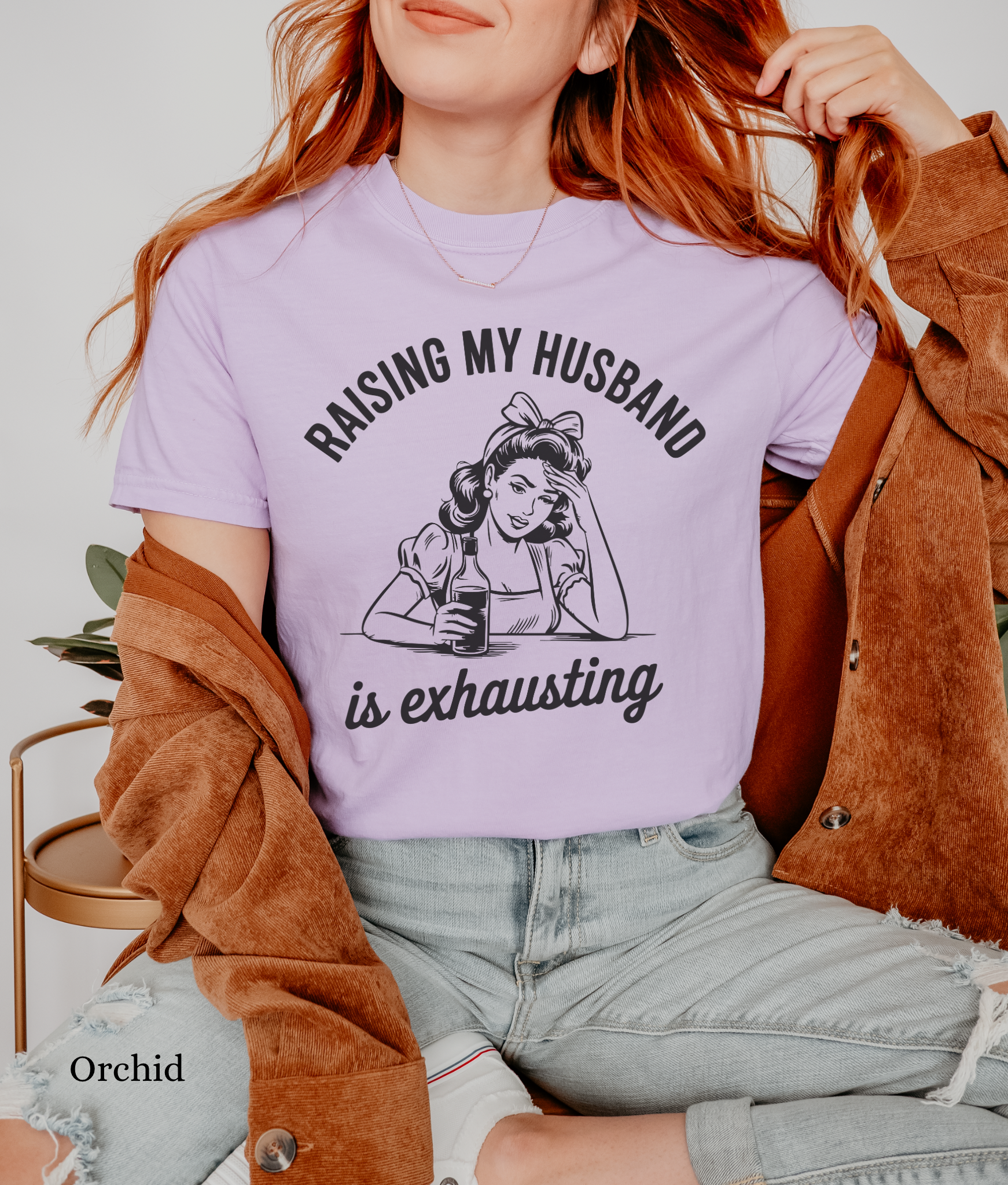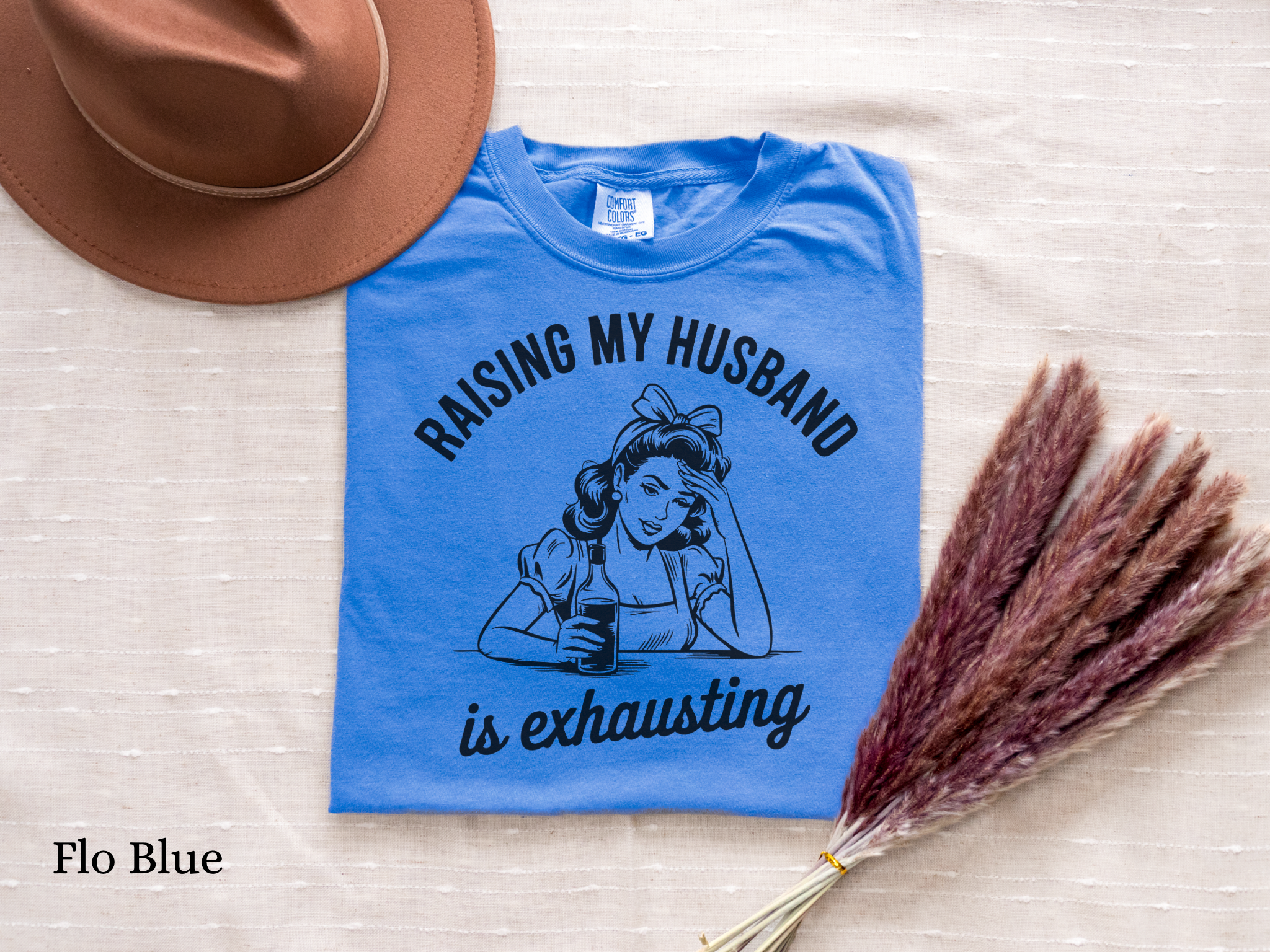 Funny Unisex T-Shirt - Raising My Husband is Exhausting, Humorous Gift for Wives, Casual Wear, Gifts for Her