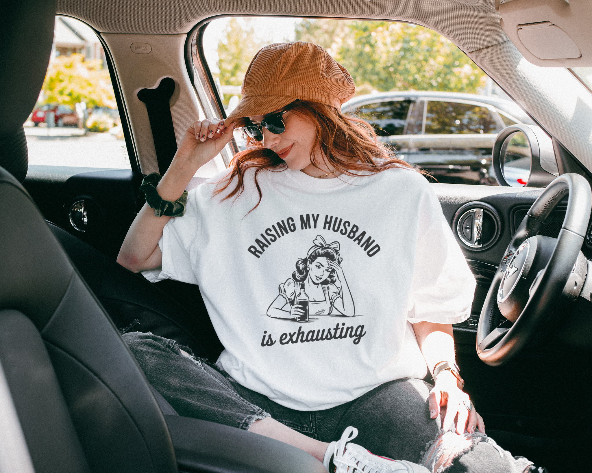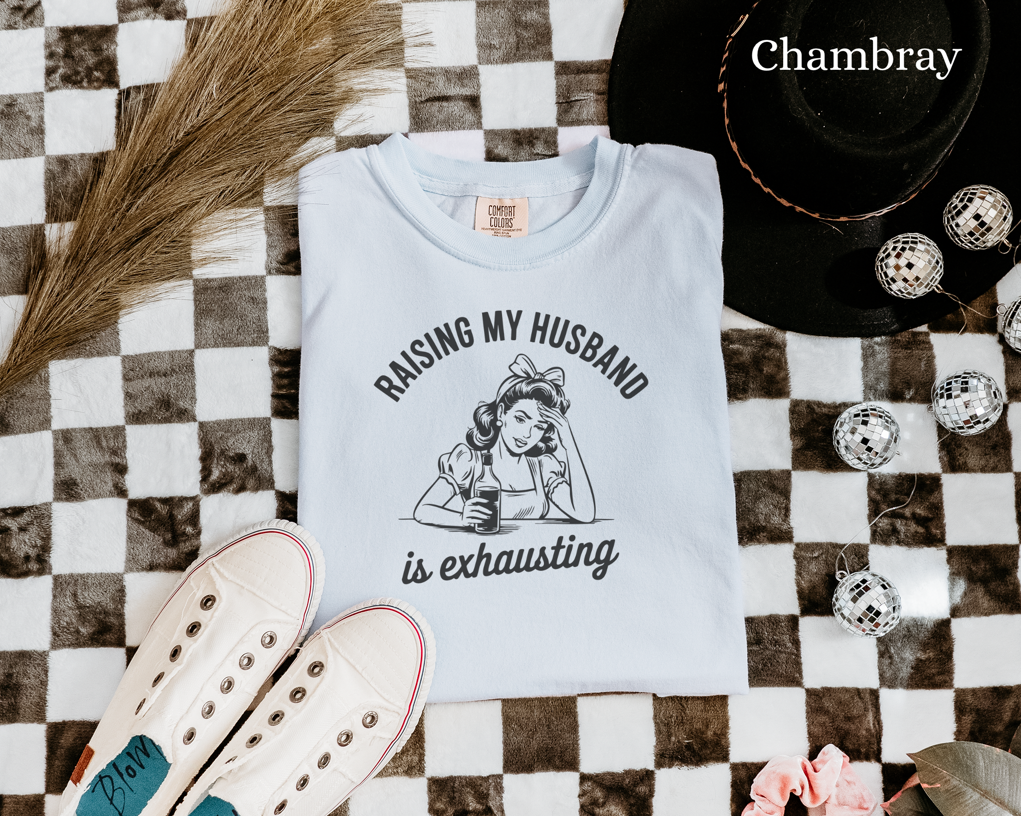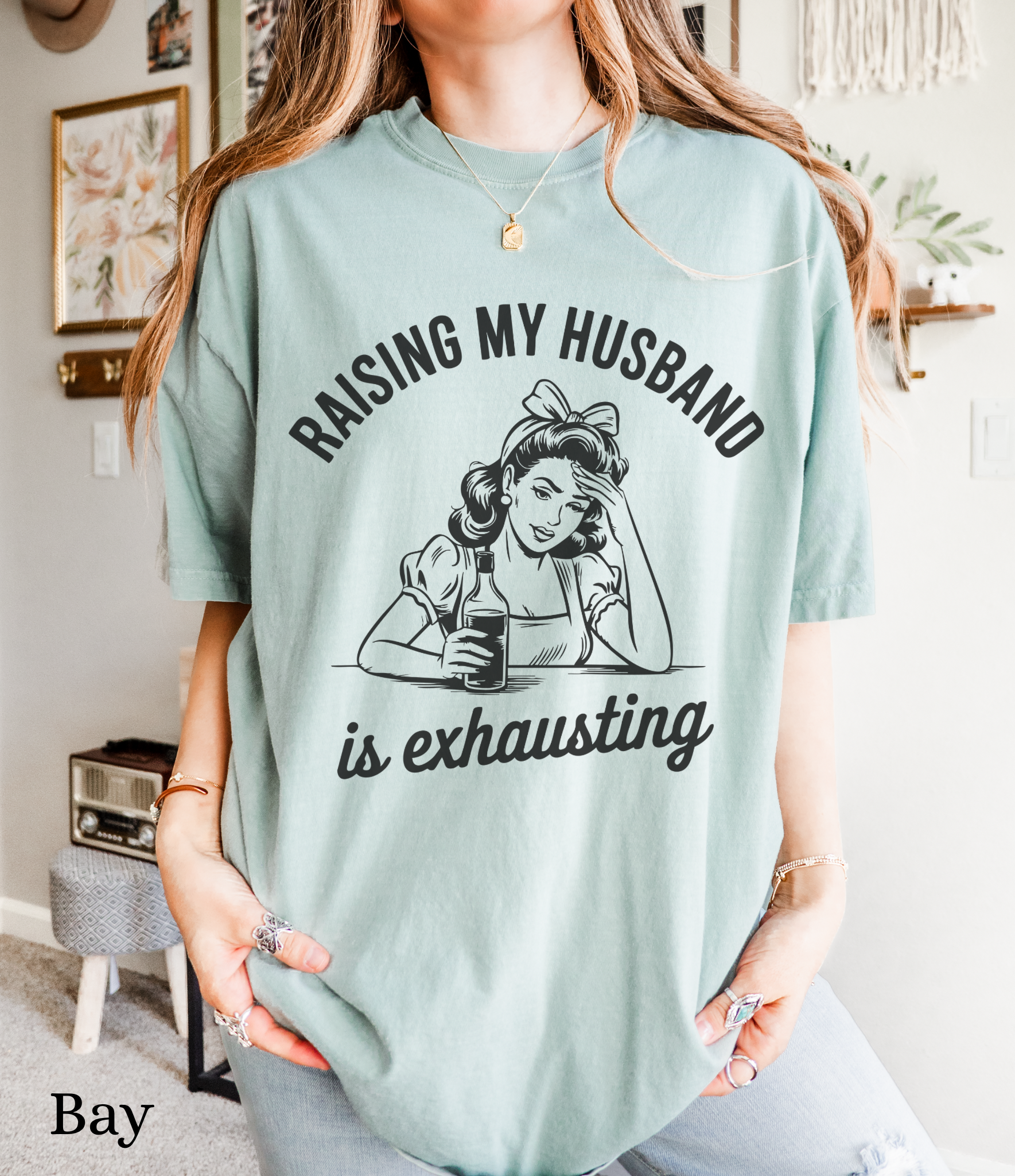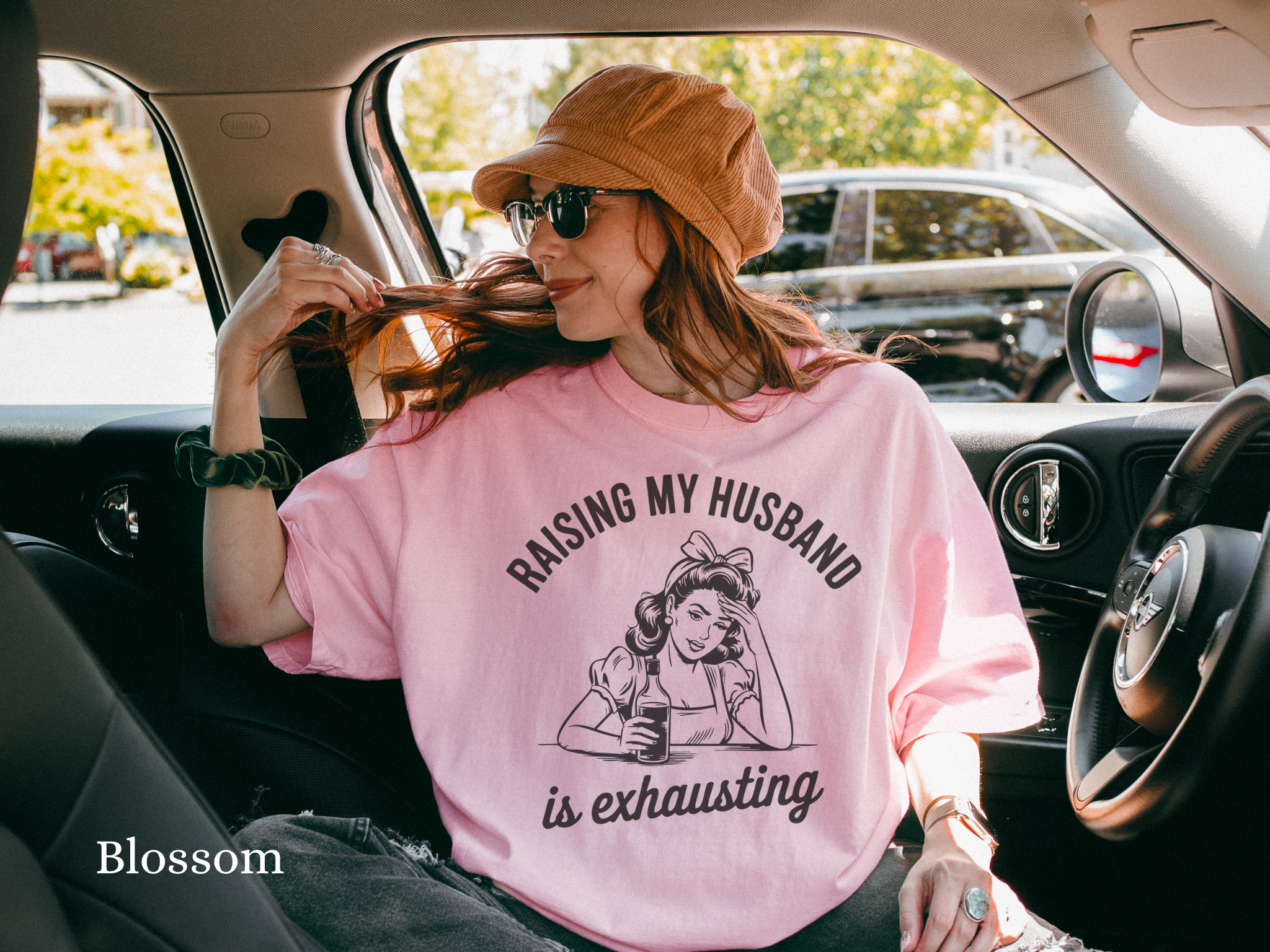 Funny Unisex T-Shirt - Raising My Husband is Exhausting, Humorous Gift for Wives, Casual Wear, Gifts for Her