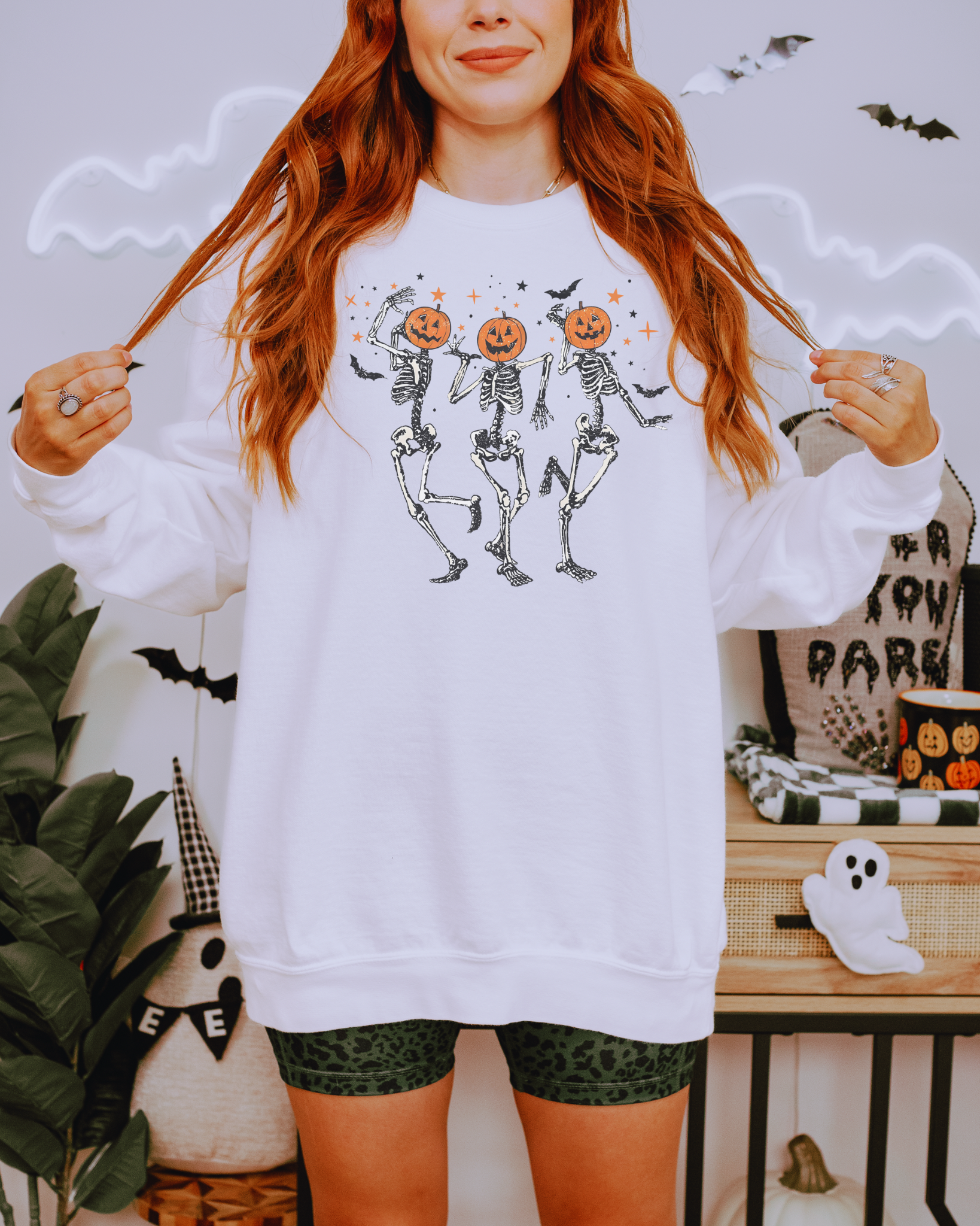 Elevate your autumn wardrobe with this cozy unisex sweatshirt! Perfect for those crisp fall days, it features a playful skeleton design with pumpkin heads, adding a fun twist to your seasonal attire. The relaxed fit ensures a comfortable wear whether you're lounging at home or heading out for Halloween festivities. Perfect for gatherings, spooky movie nights, or just a casual day out, this sweatshirt becomes a staple for those who love to embrace the Halloween spirit. Ideal for friends and families looking to celebrate the season, this piece makes a great gift for Halloween lovers and is perfect for anyone seeking comfort and style. Enjoy the festive vibes all season long!