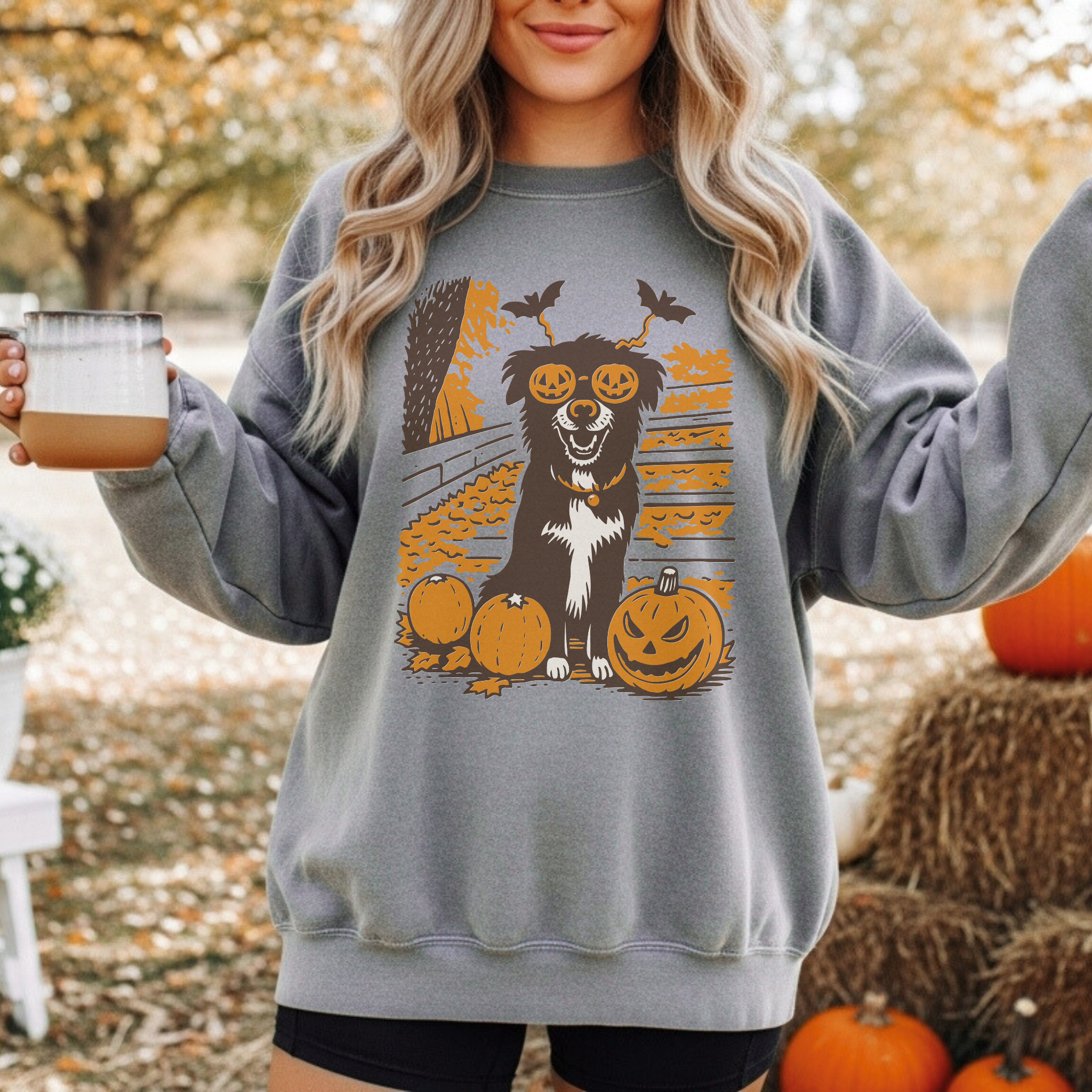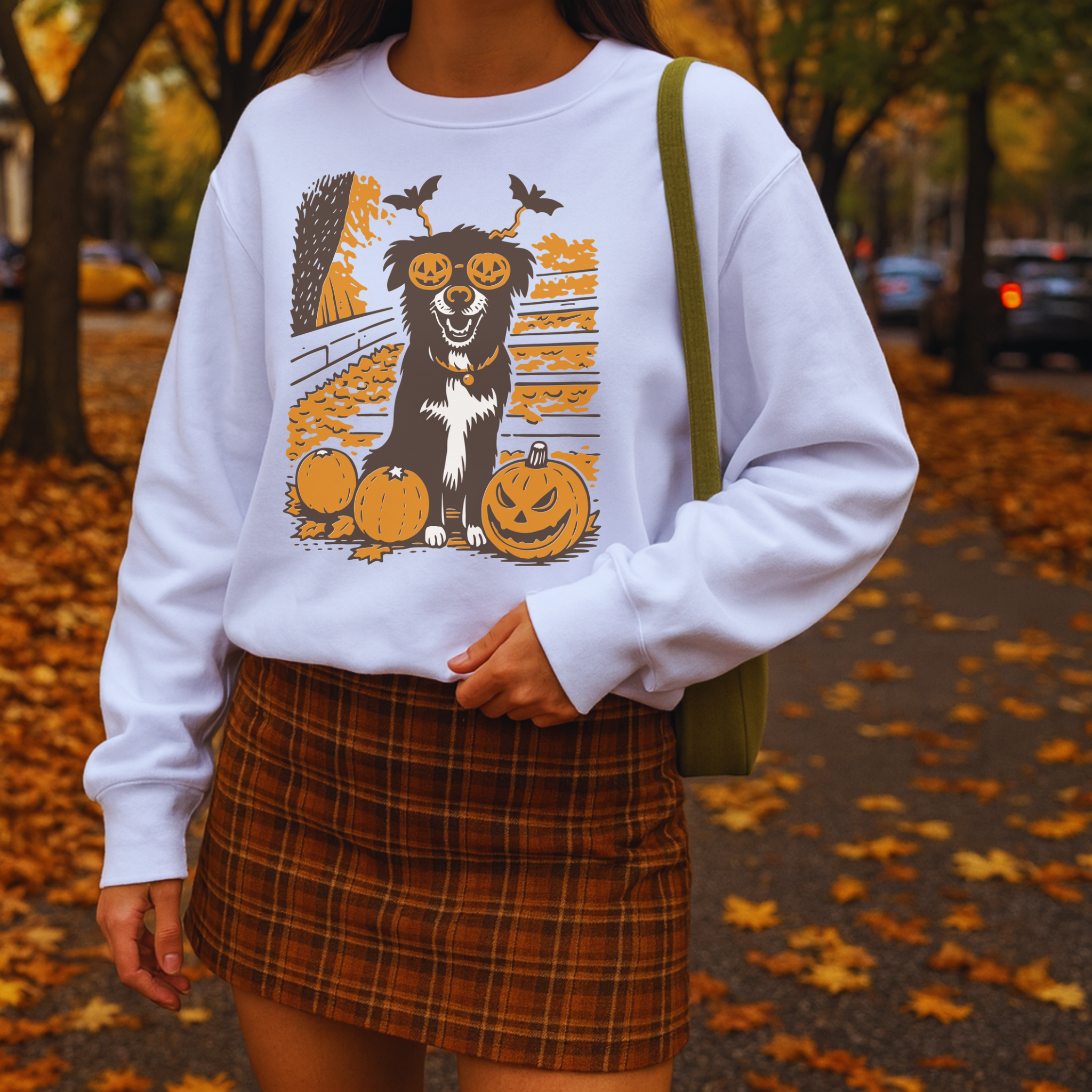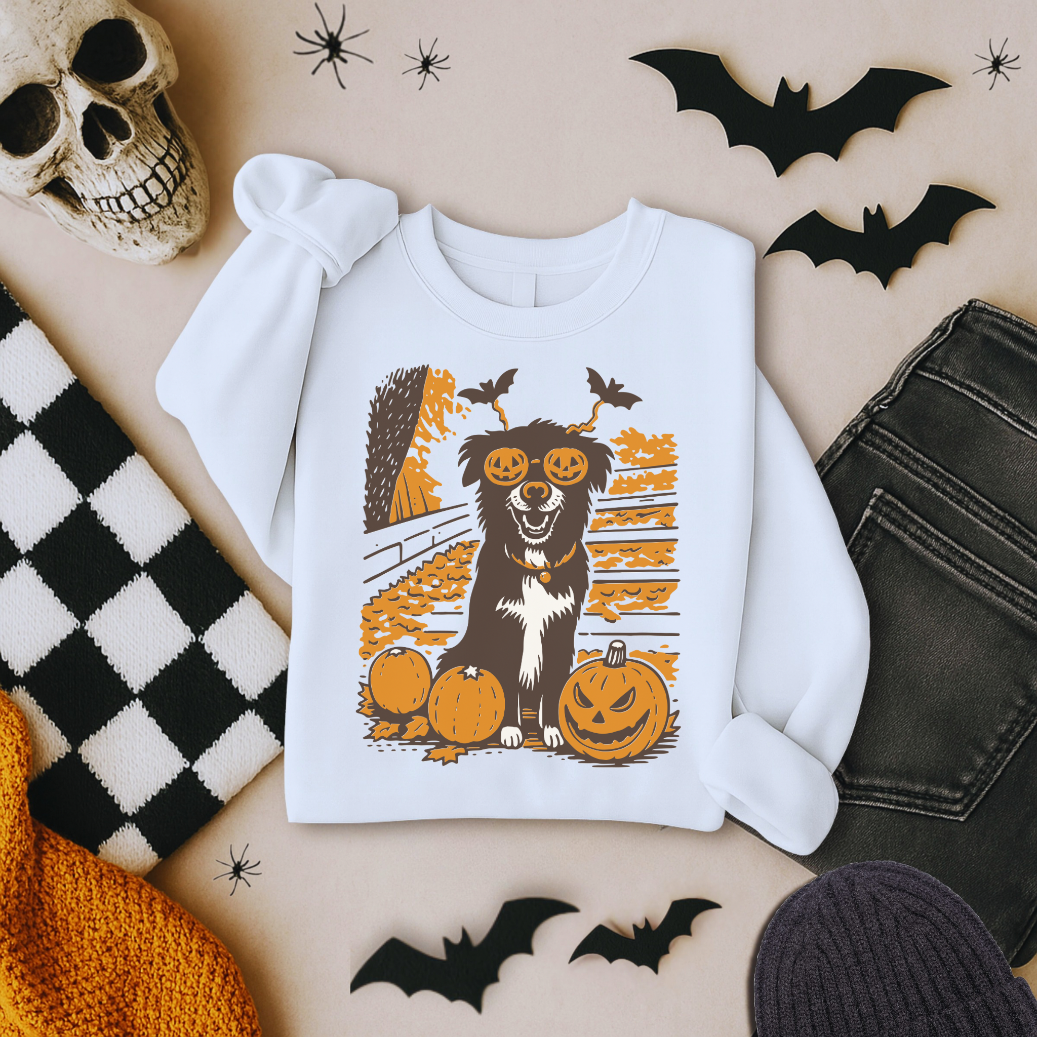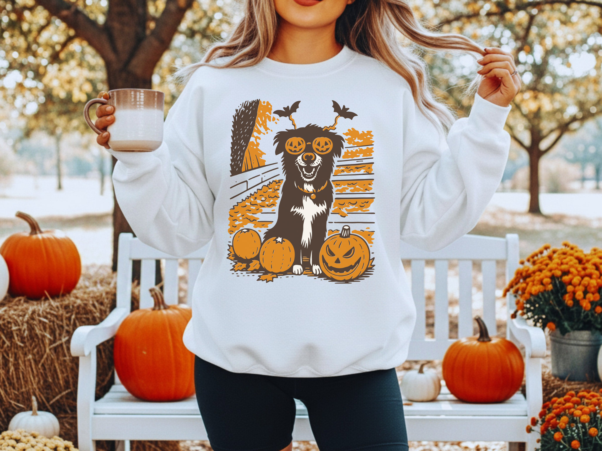 Halloween Themed Unisex Sweatshirt, Cozy Fall Apparel, Dog Lover Gift, Pumpkin Decor, Casual Fall Fashion, Spooky Season Sweatshirt