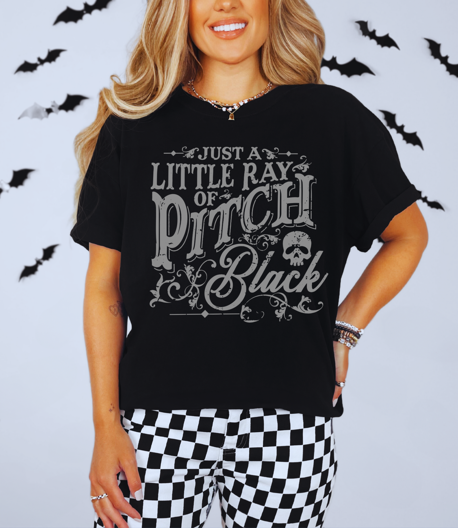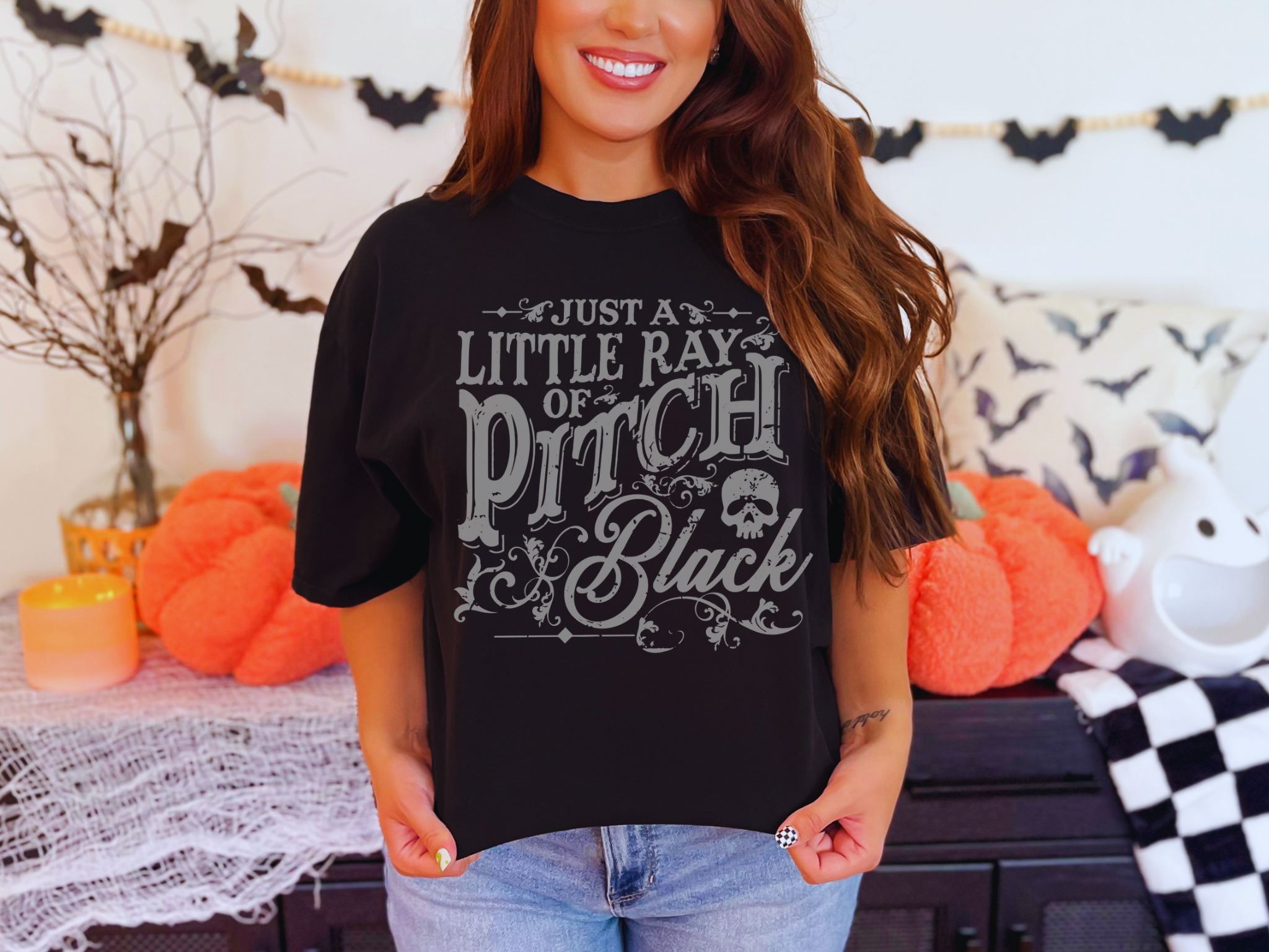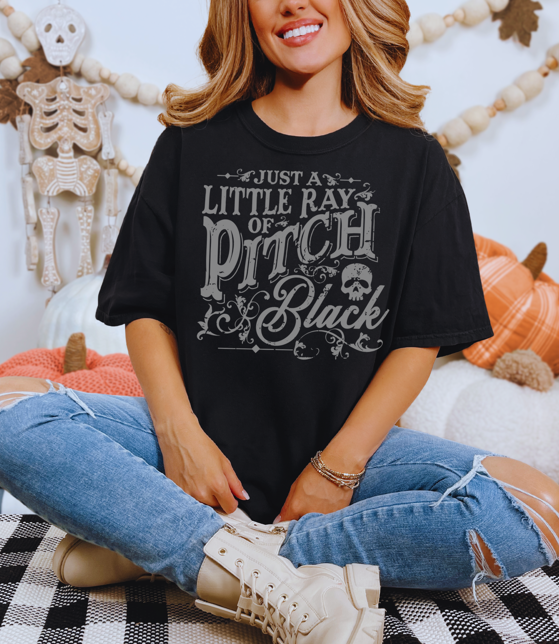 Just a Little Ray of Pitch Black Halloween Shirt – Funny Spooky Graphic Tee for Women