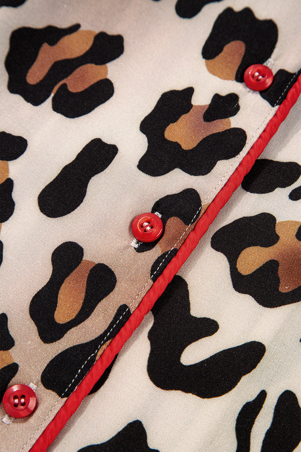Khaki Leopard Print Colorblock Striped Patchwork Shirt and Pants Pajama Set