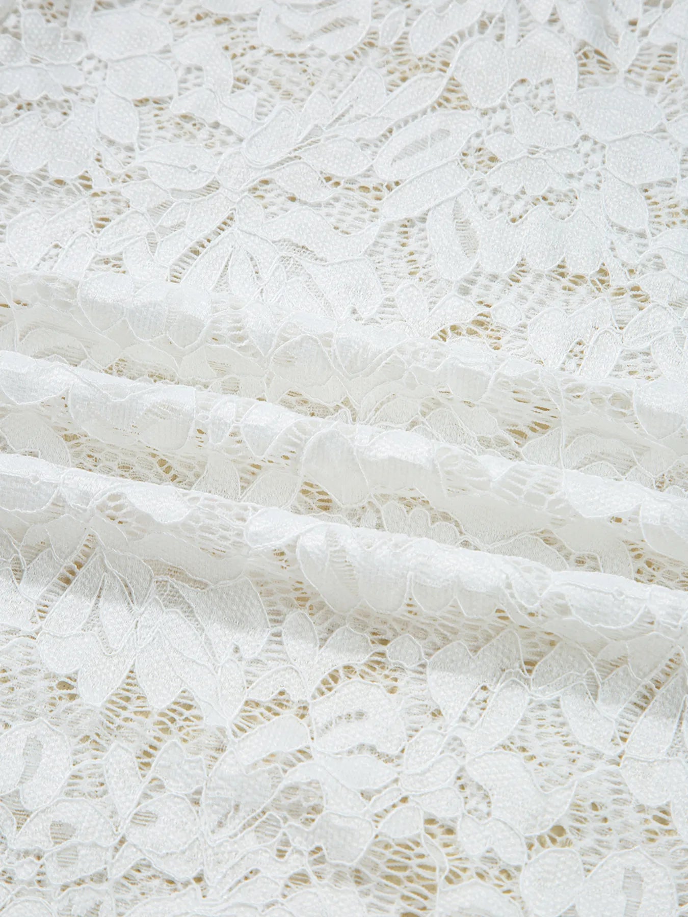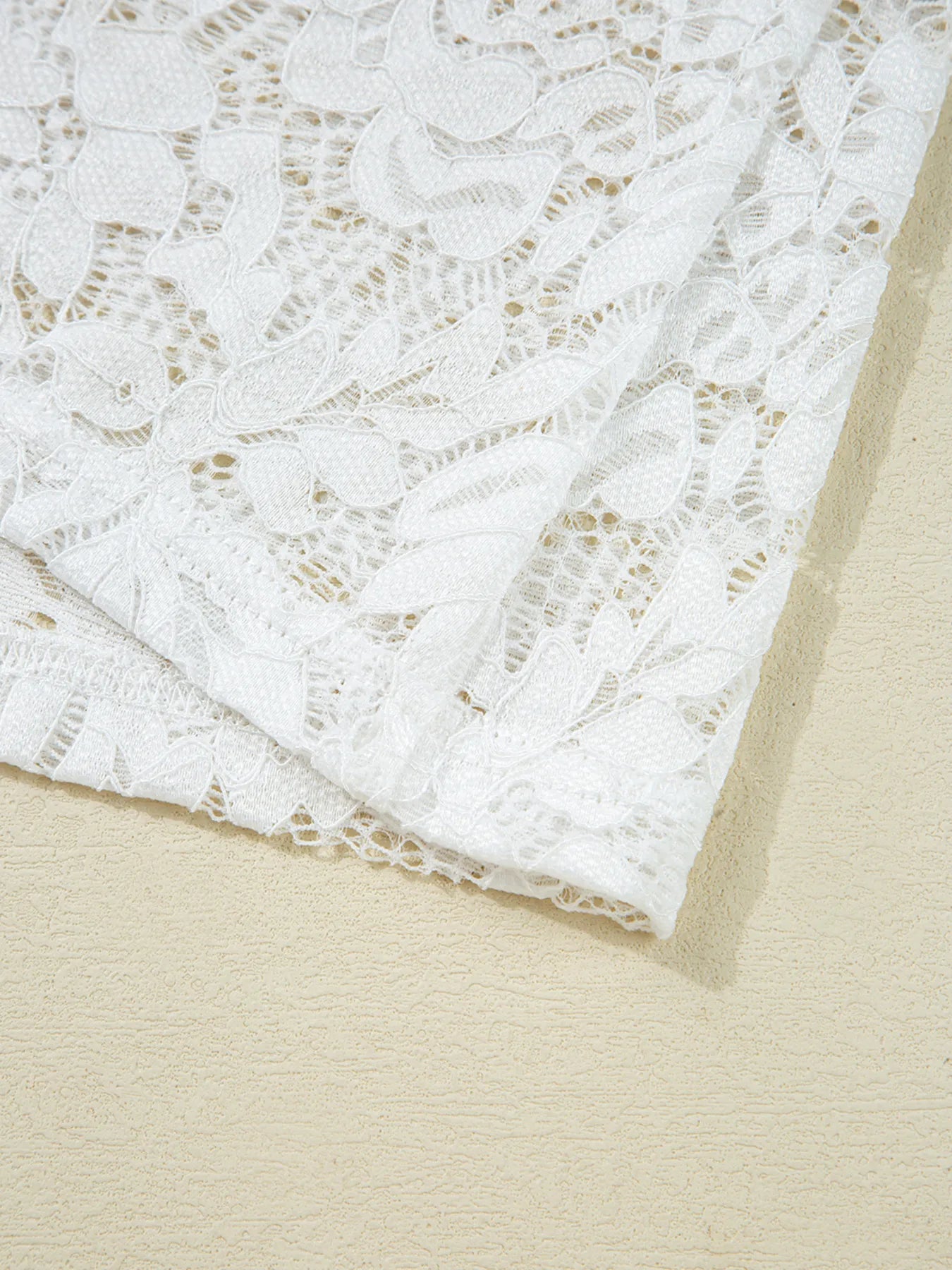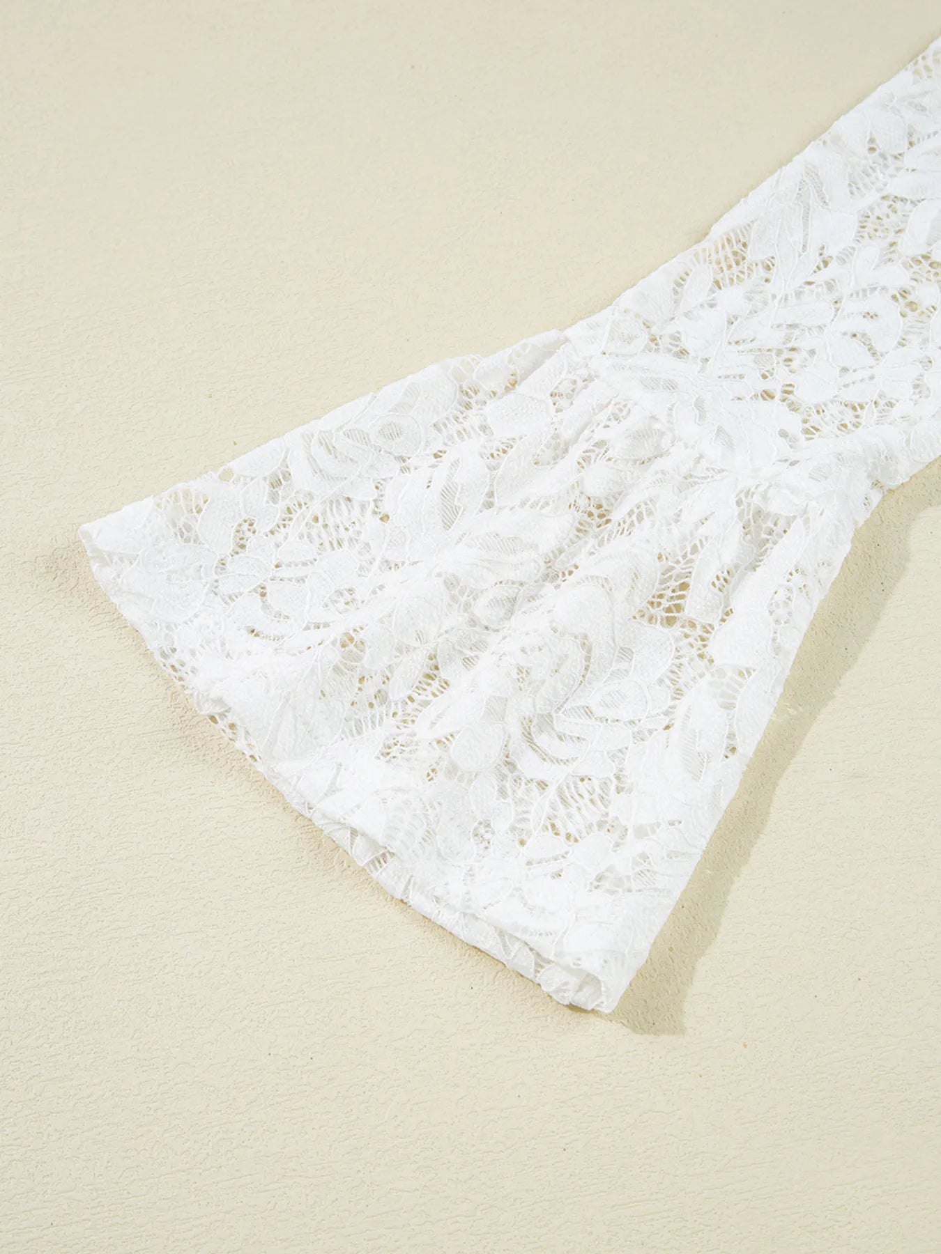 Lace Crochet Bell Sleeve Mock Neck Blouse