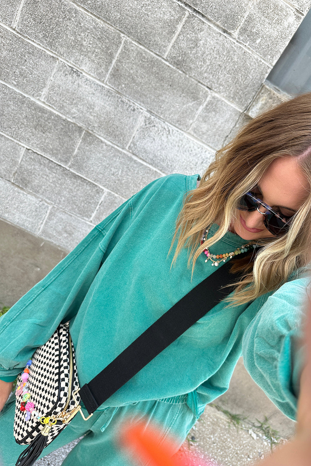 Lapis Mineral Wash Pullover and Wide Leg Cargo Pants Set