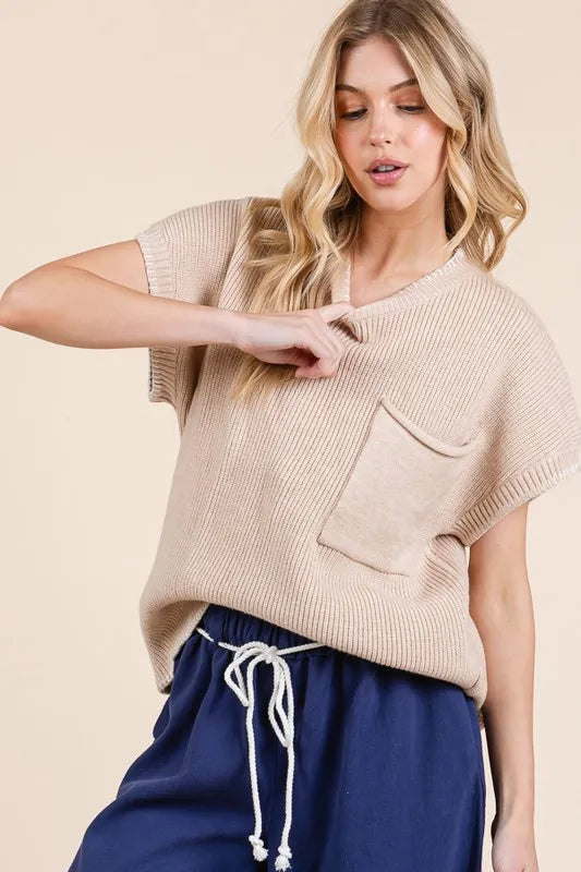 Lime 'N' Chili Solid Cap Sleeve Stitch Edge Knit Sweater