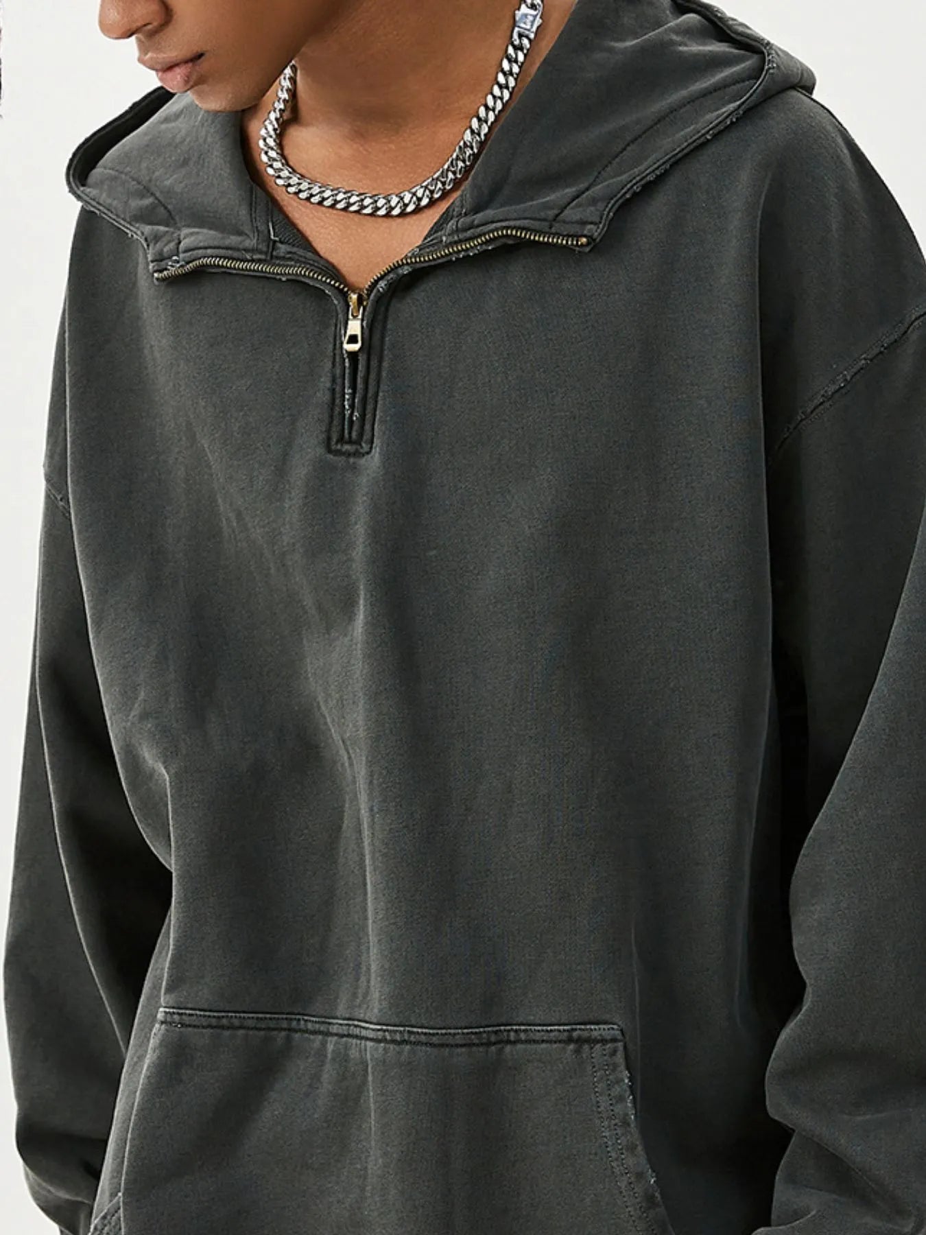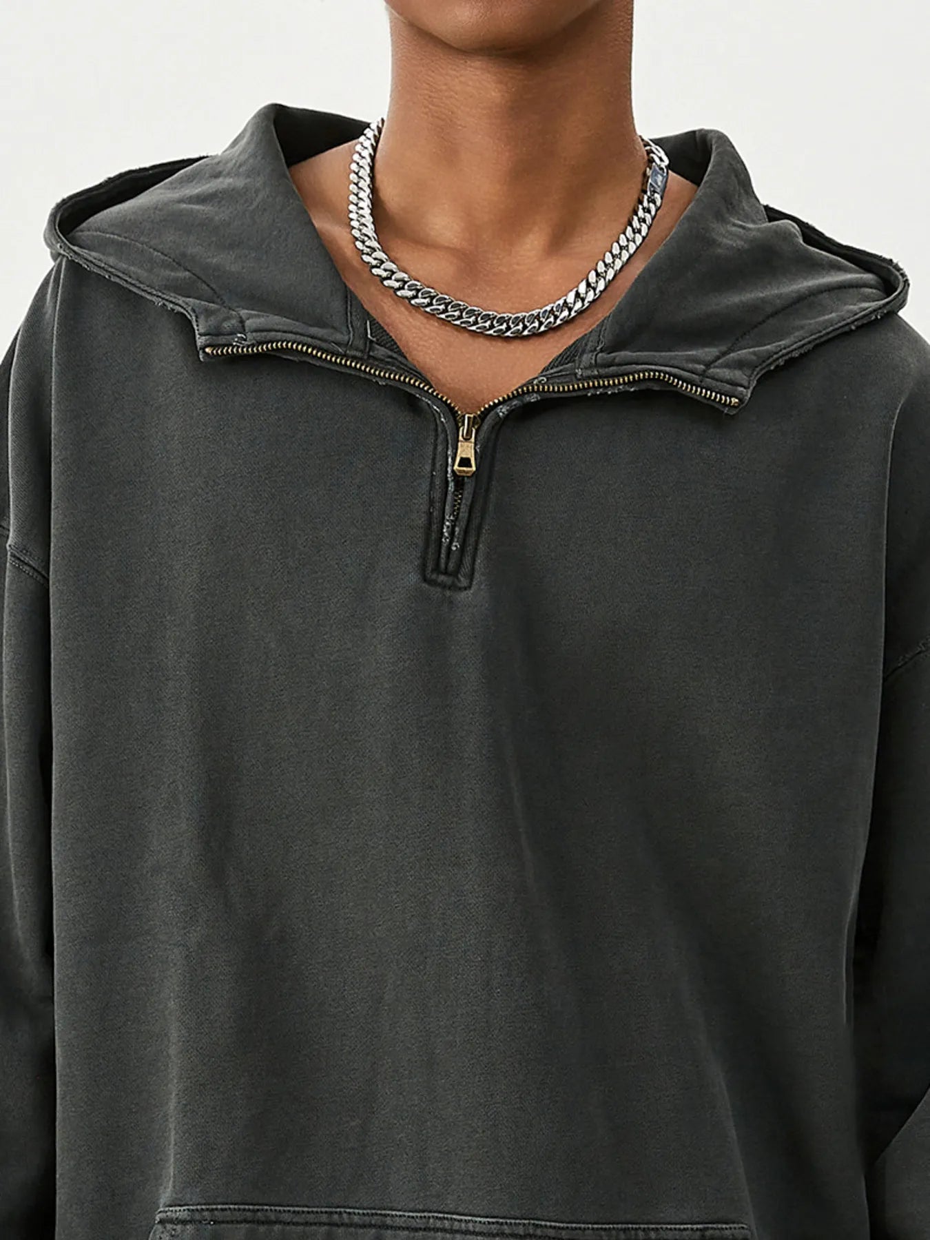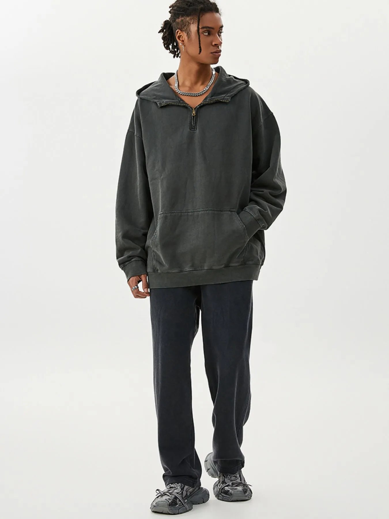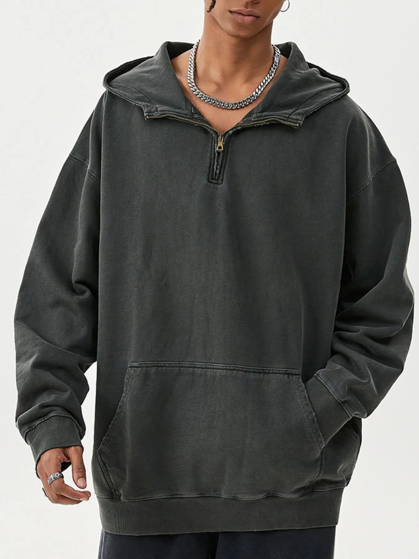 Men's Washed Quarter-Zip Hoodie with Kangaroo Pocket