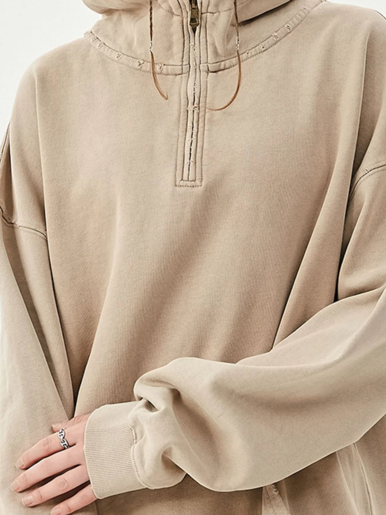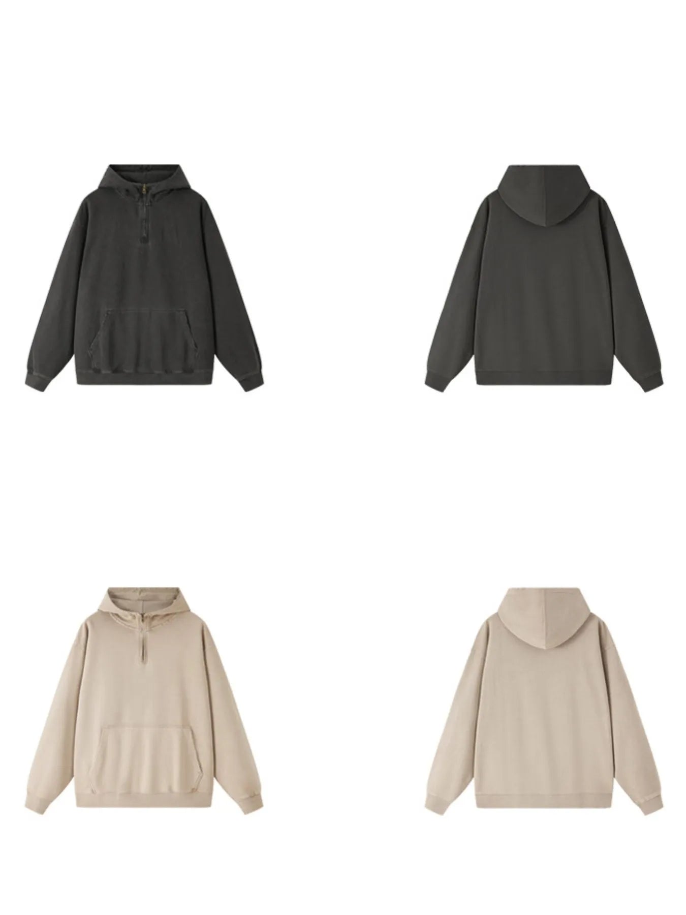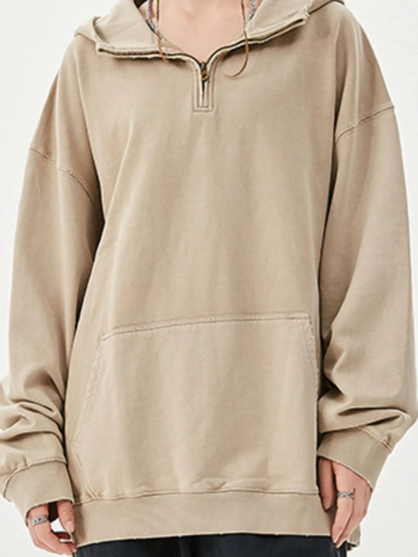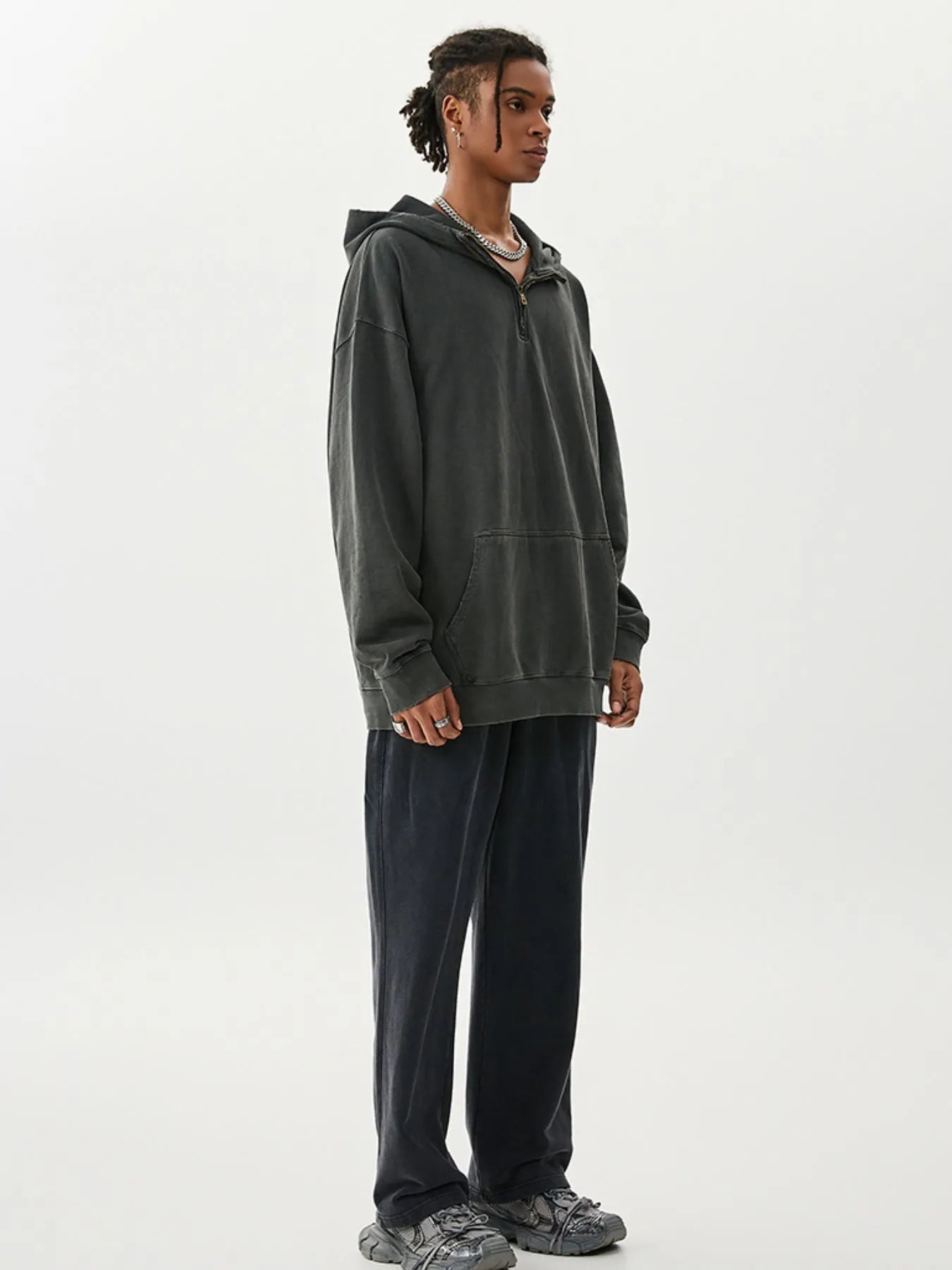 Men's Washed Quarter-Zip Hoodie with Kangaroo Pocket