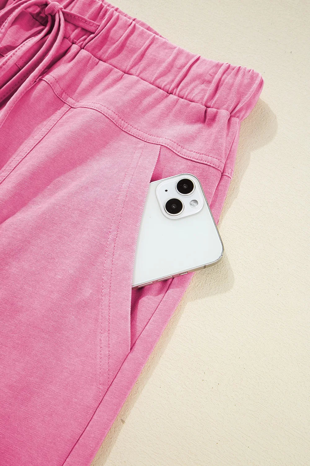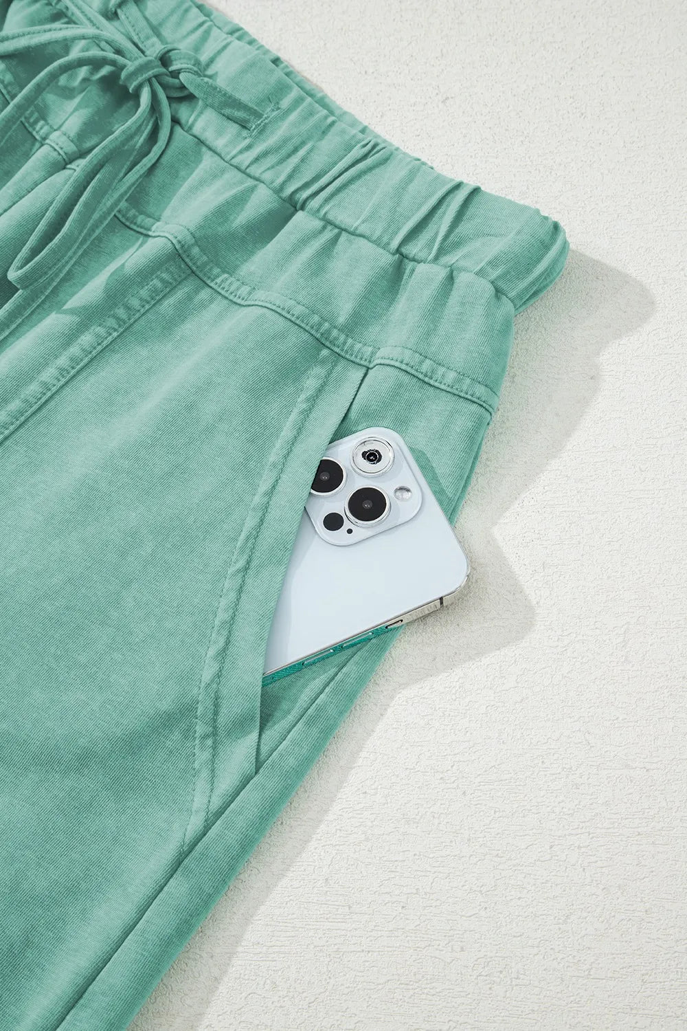Mineral Wash Exposed Seam Drawstring High Waist Wide Leg Cargo Pants