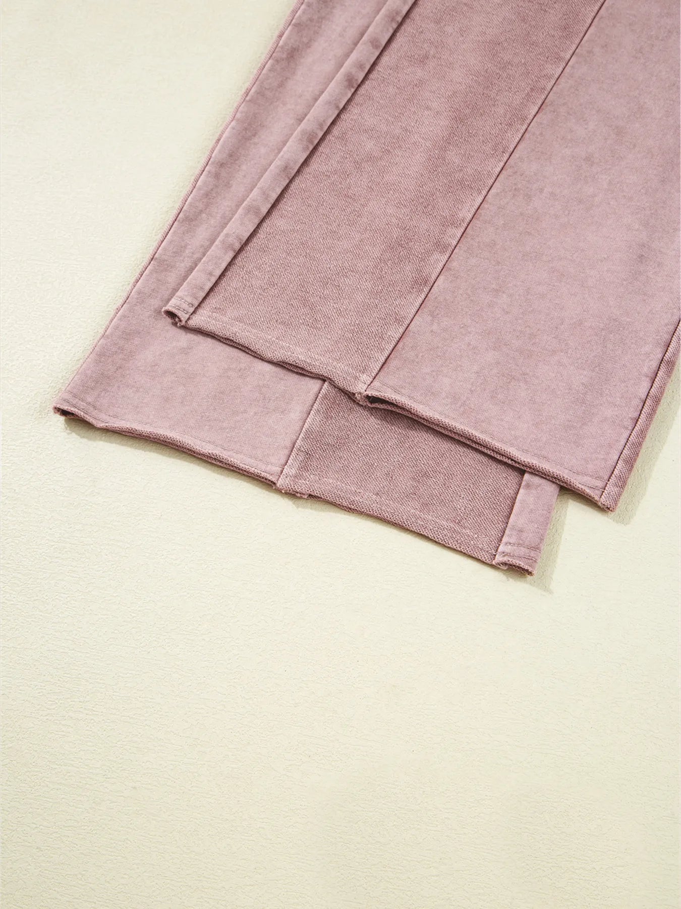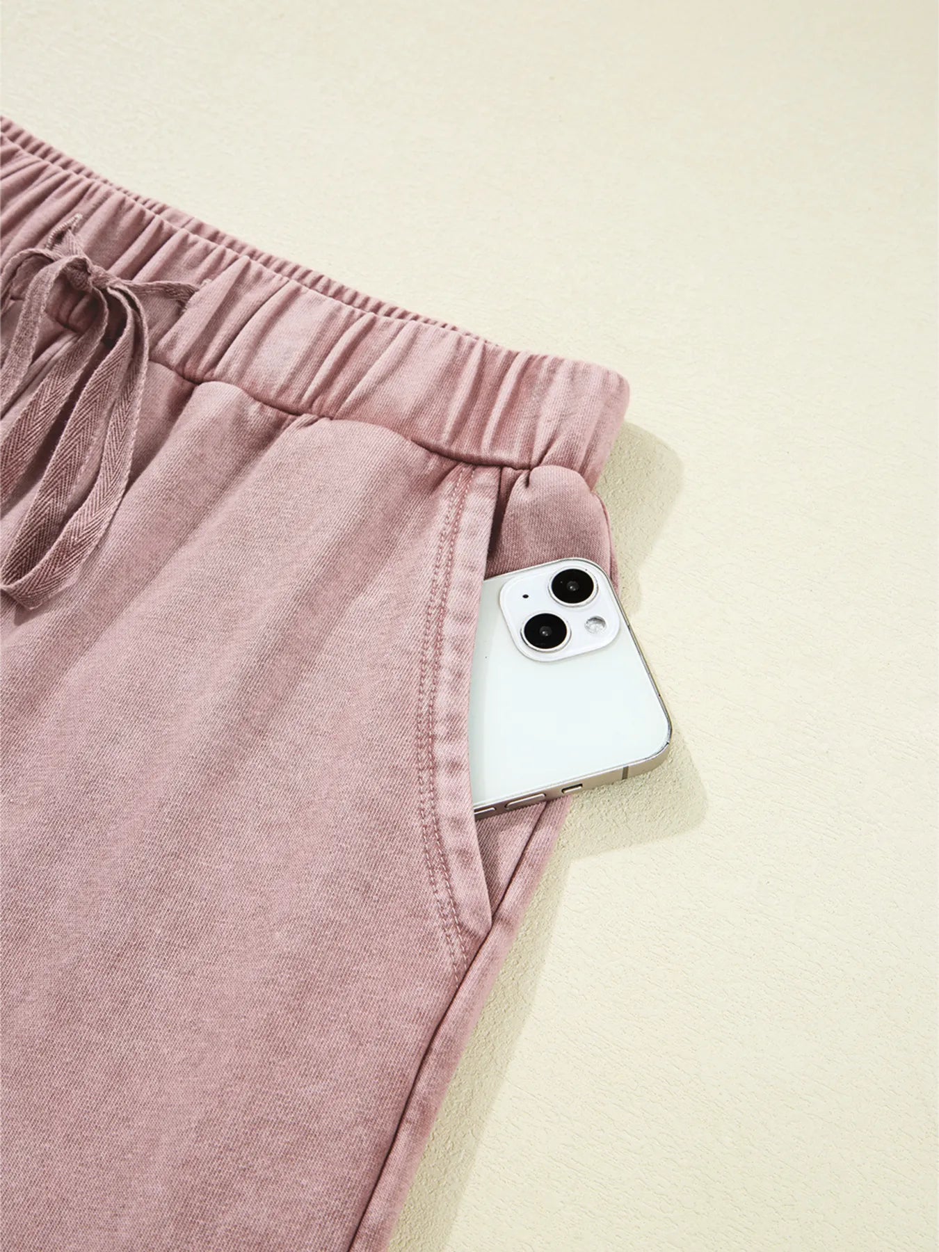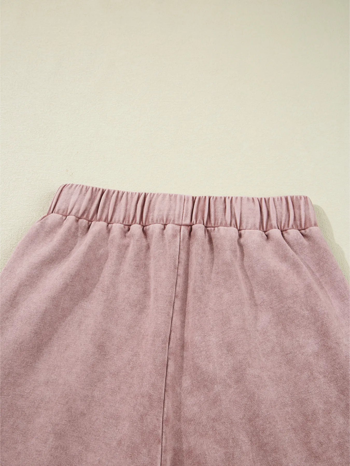 Dusty Rose Mineral Wash Tiered Wide Leg Pants – Boho Patchwork Drawstring