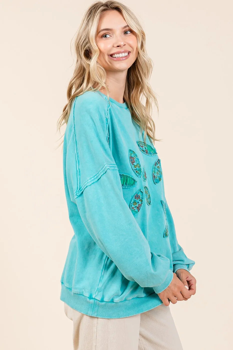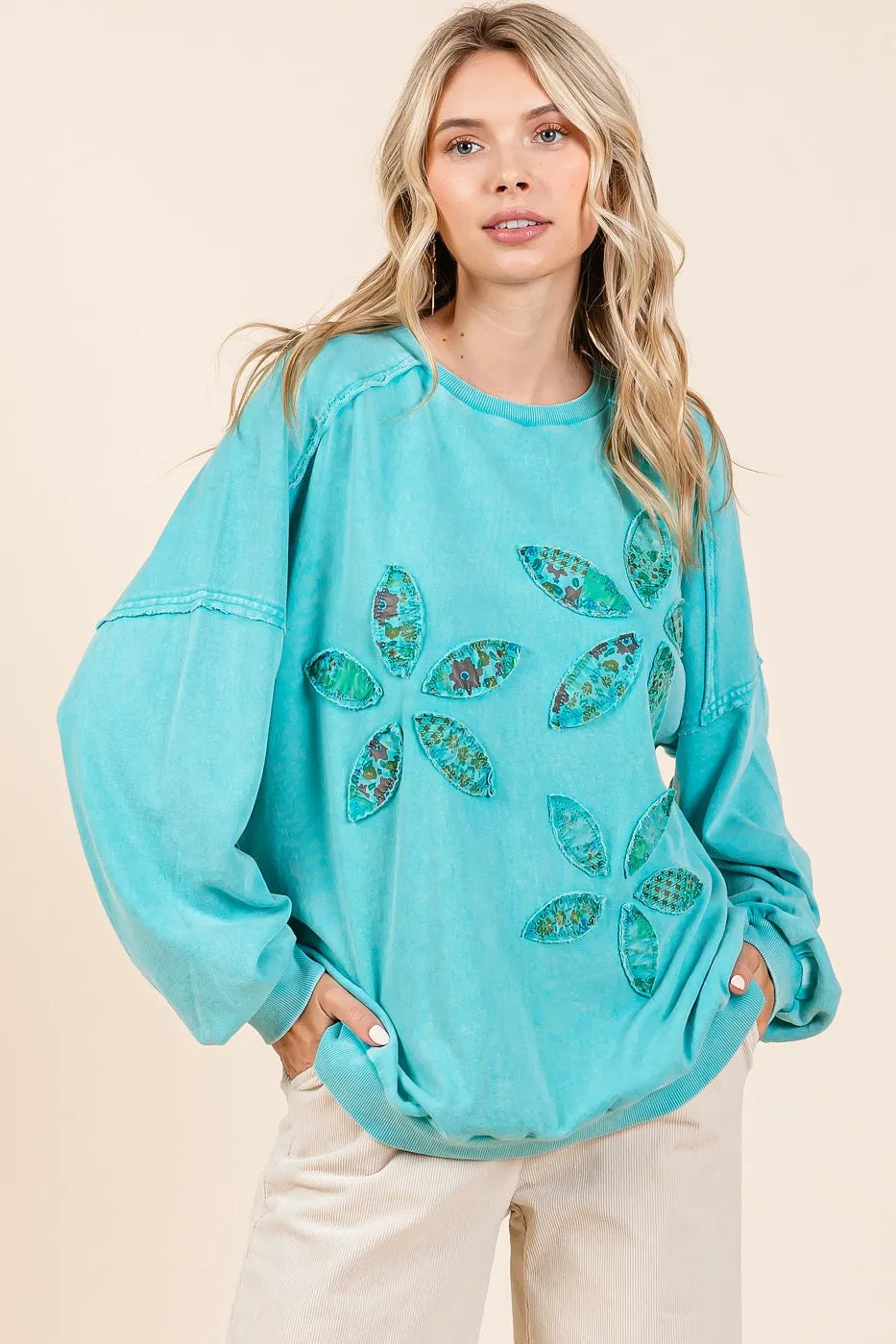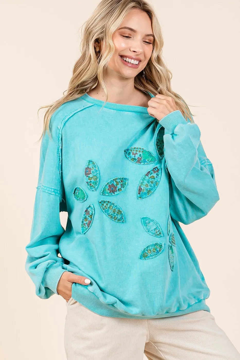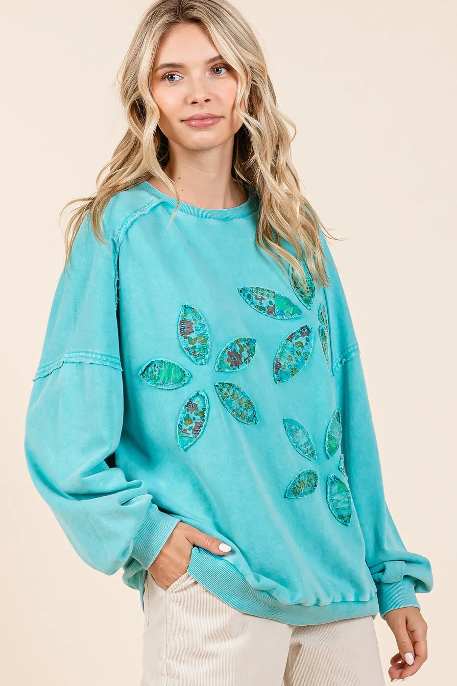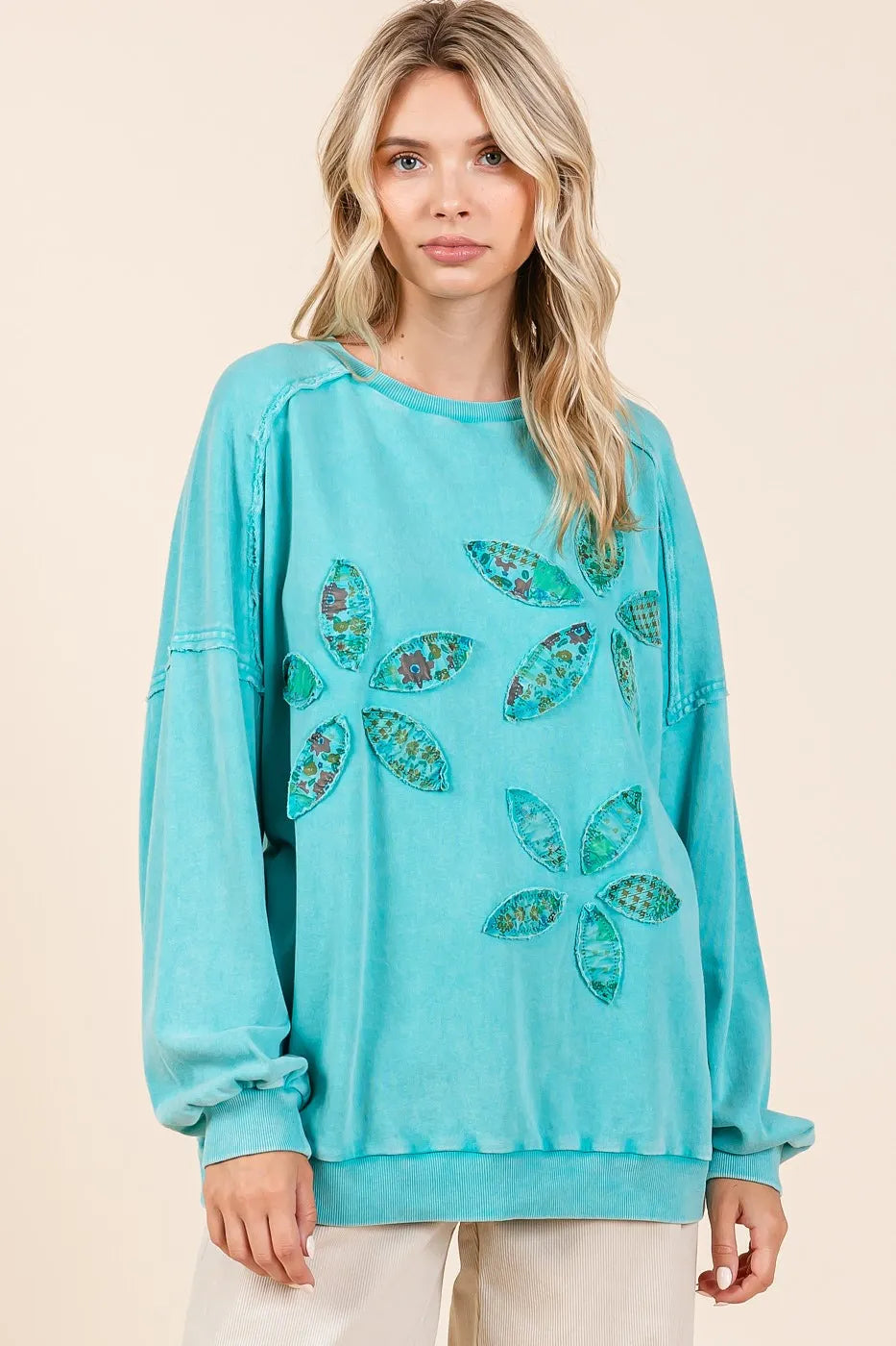 Mittoshop Vintage Textile Flower Patch Mineral Wash Pullover Sweatshirt