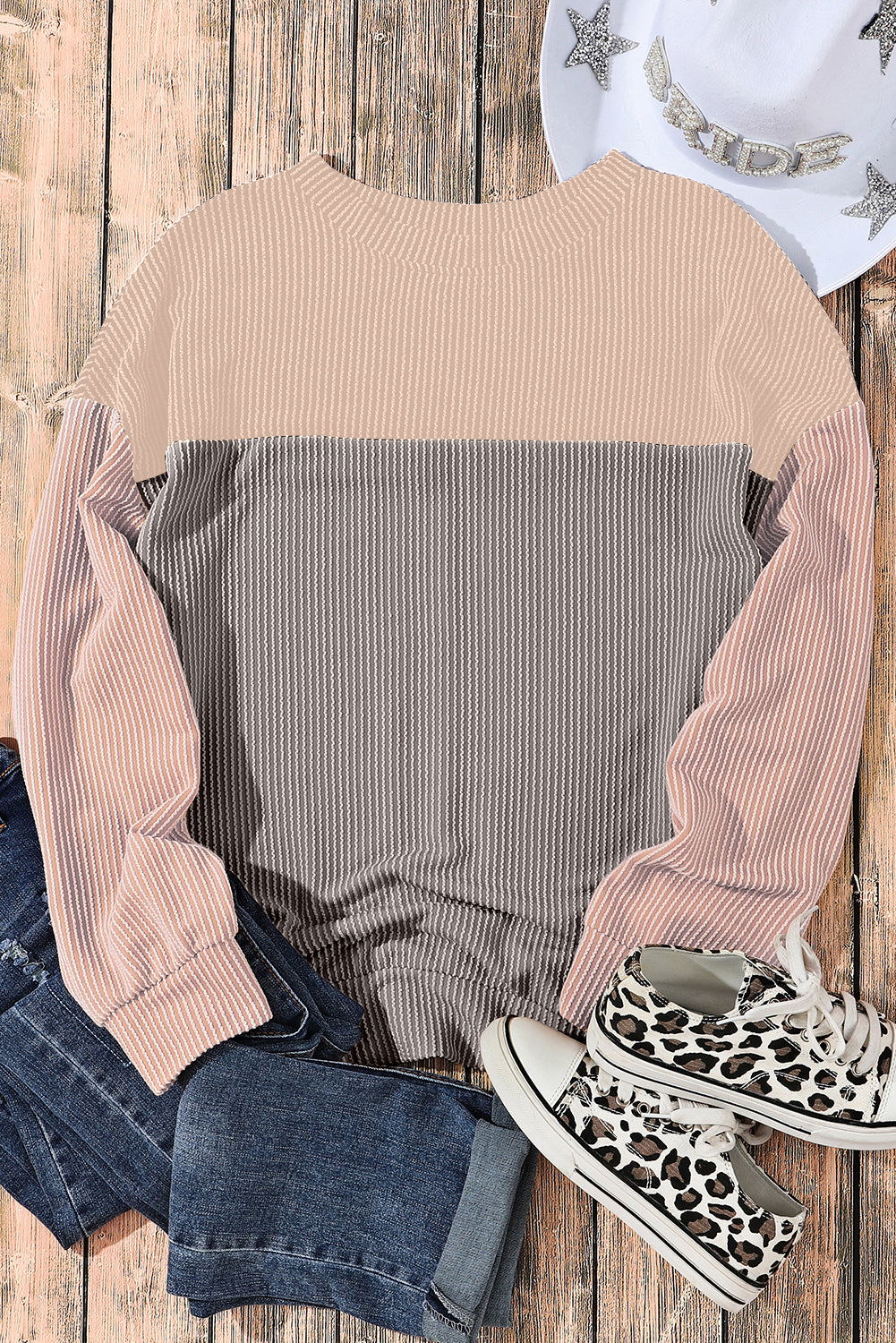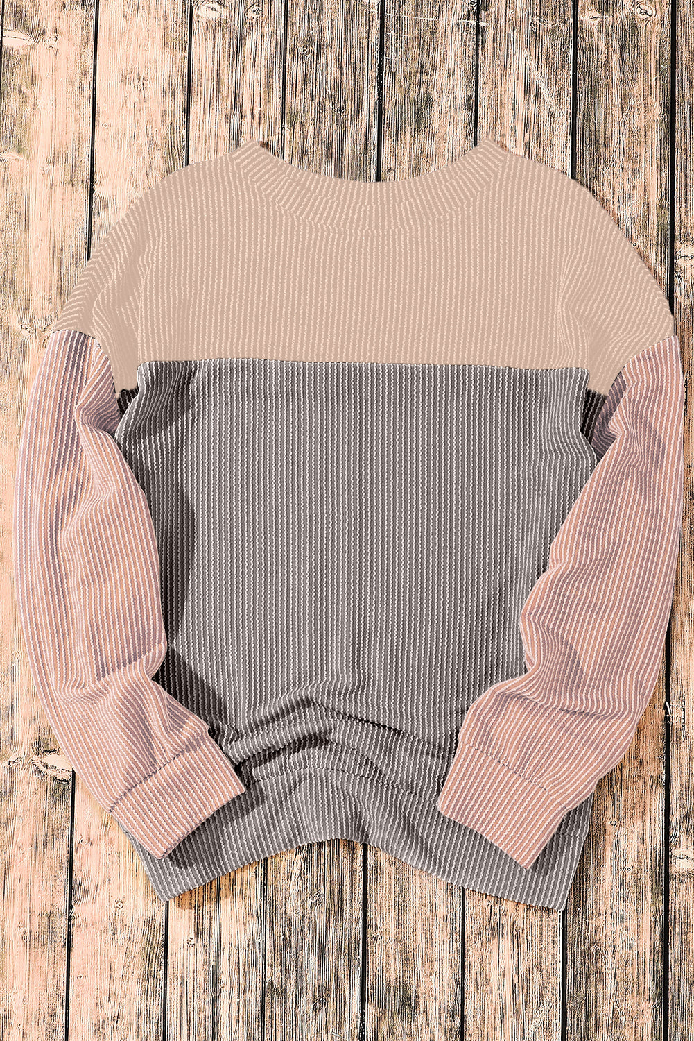 Multicolor Colorblock Ribbed Loose Long Sleeve Top