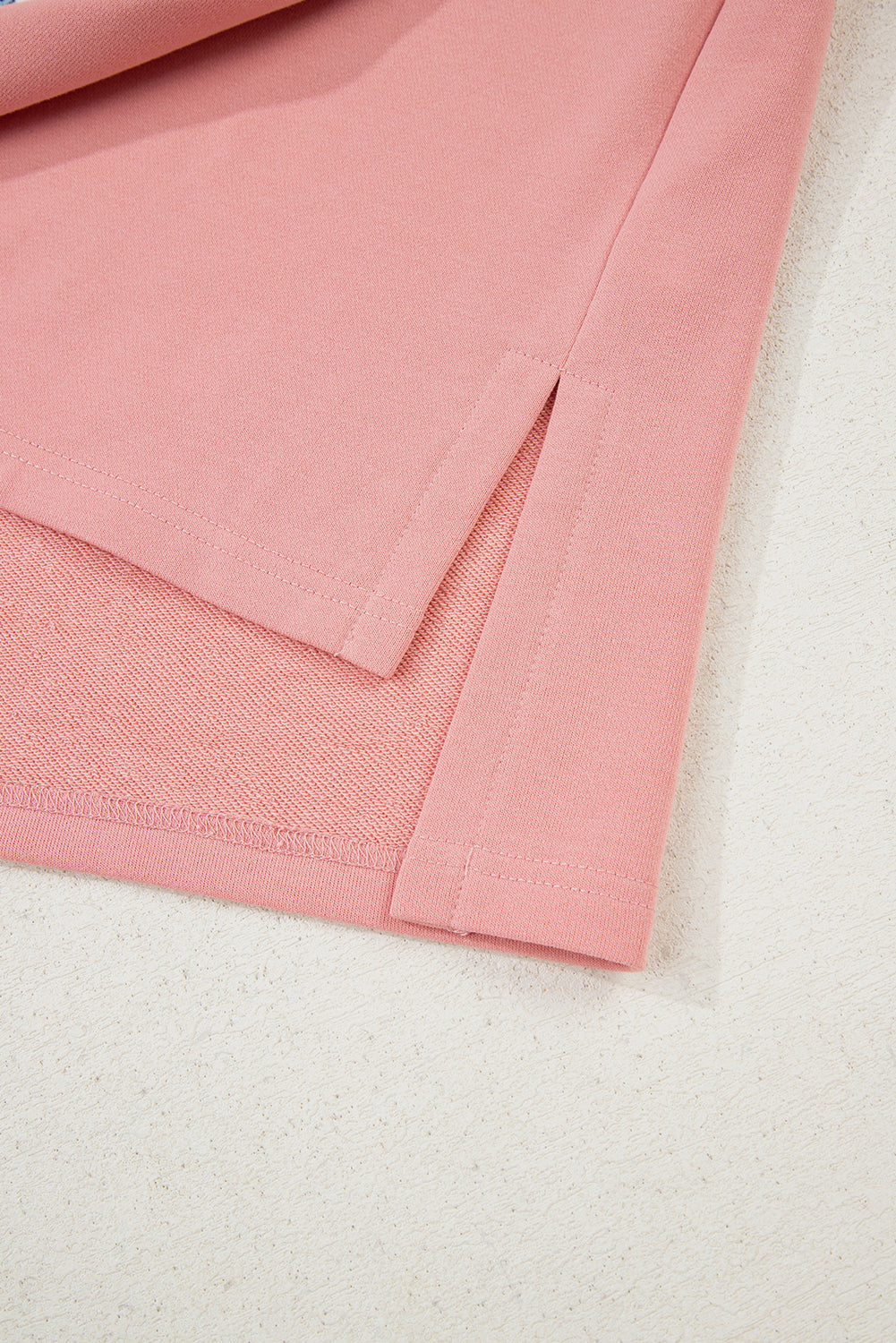 Peach Blossom Flower Applique Patchwork Drop Sleeve Pullover Sweatshirt