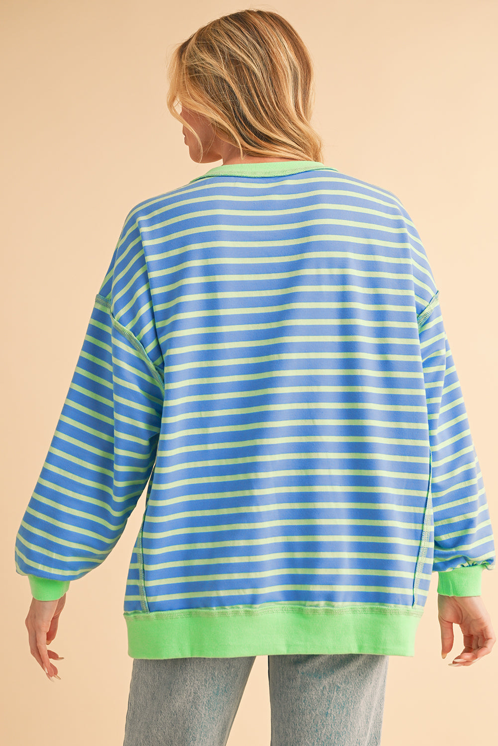 Pink Stripe Contrast Trim High Low Tunic Sweatshirt