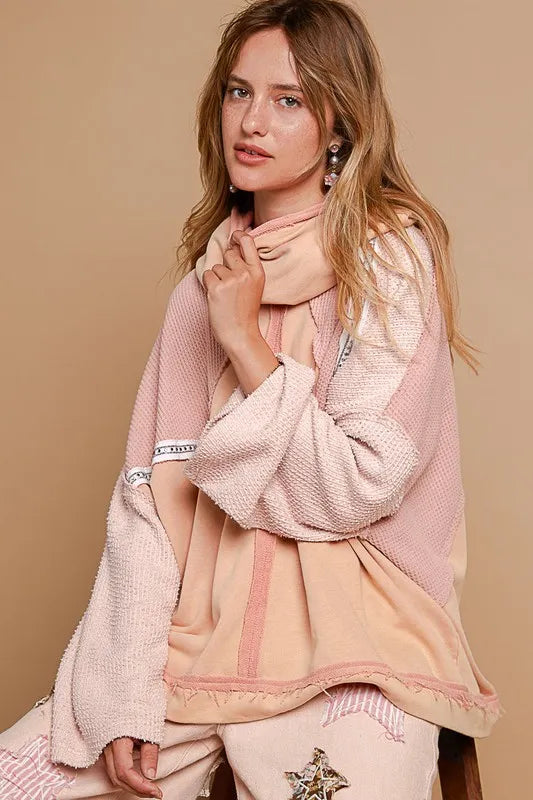 POL Exposed Seam Turtleneck Stud Trim French Terry Hoodie