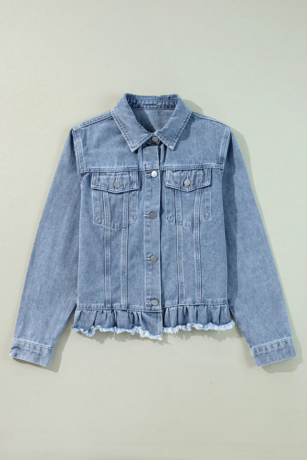 Raw Hem Long Sleeve Denim Jacket