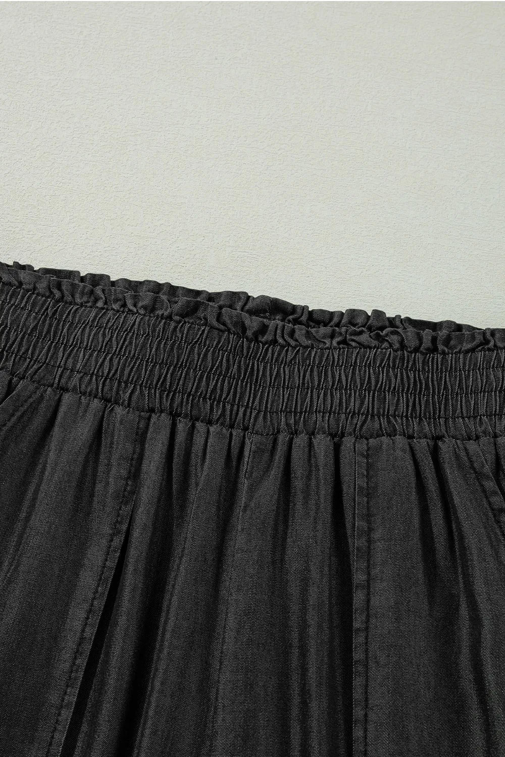 Side Pockets Frilled Smocked High Waist Wide Leg Pants