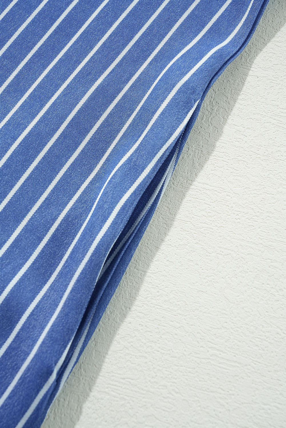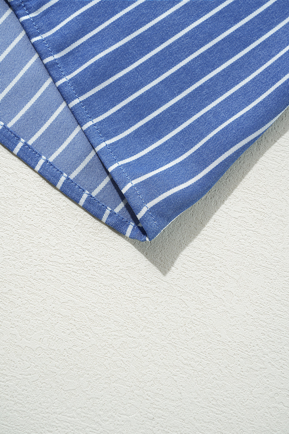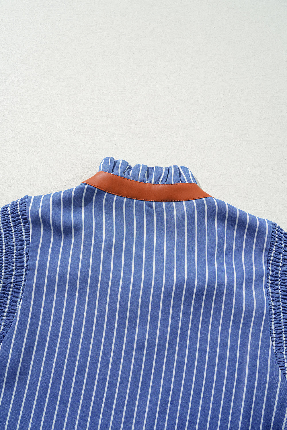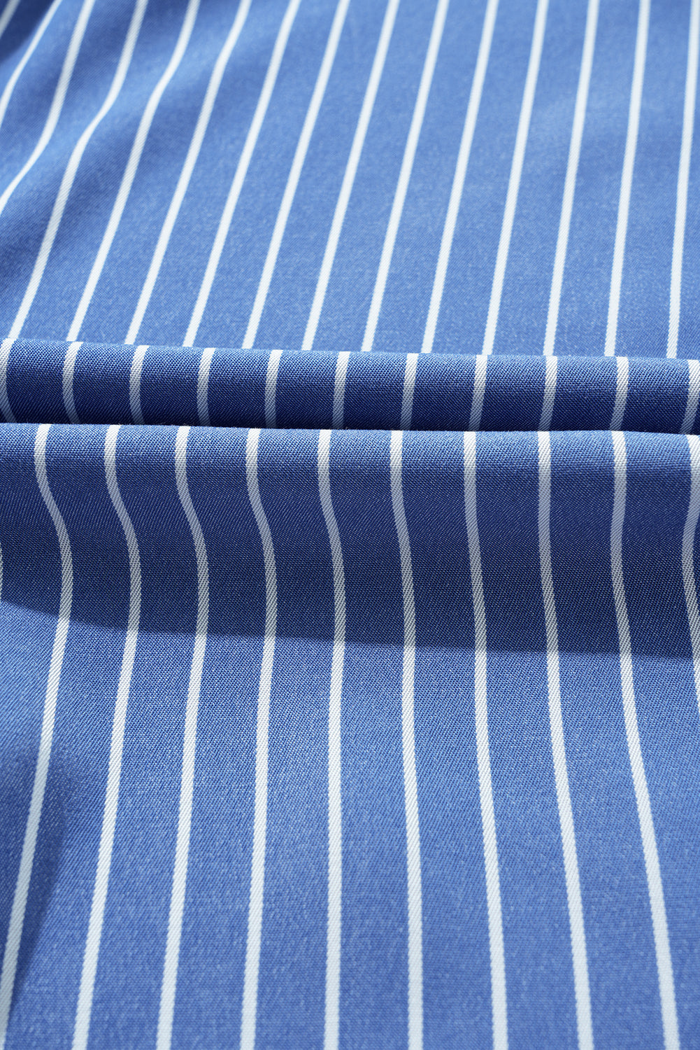 Sky Blue Stripe Frilly Split Neck Shirred Ruffle Sleeve Mini Shift Dress