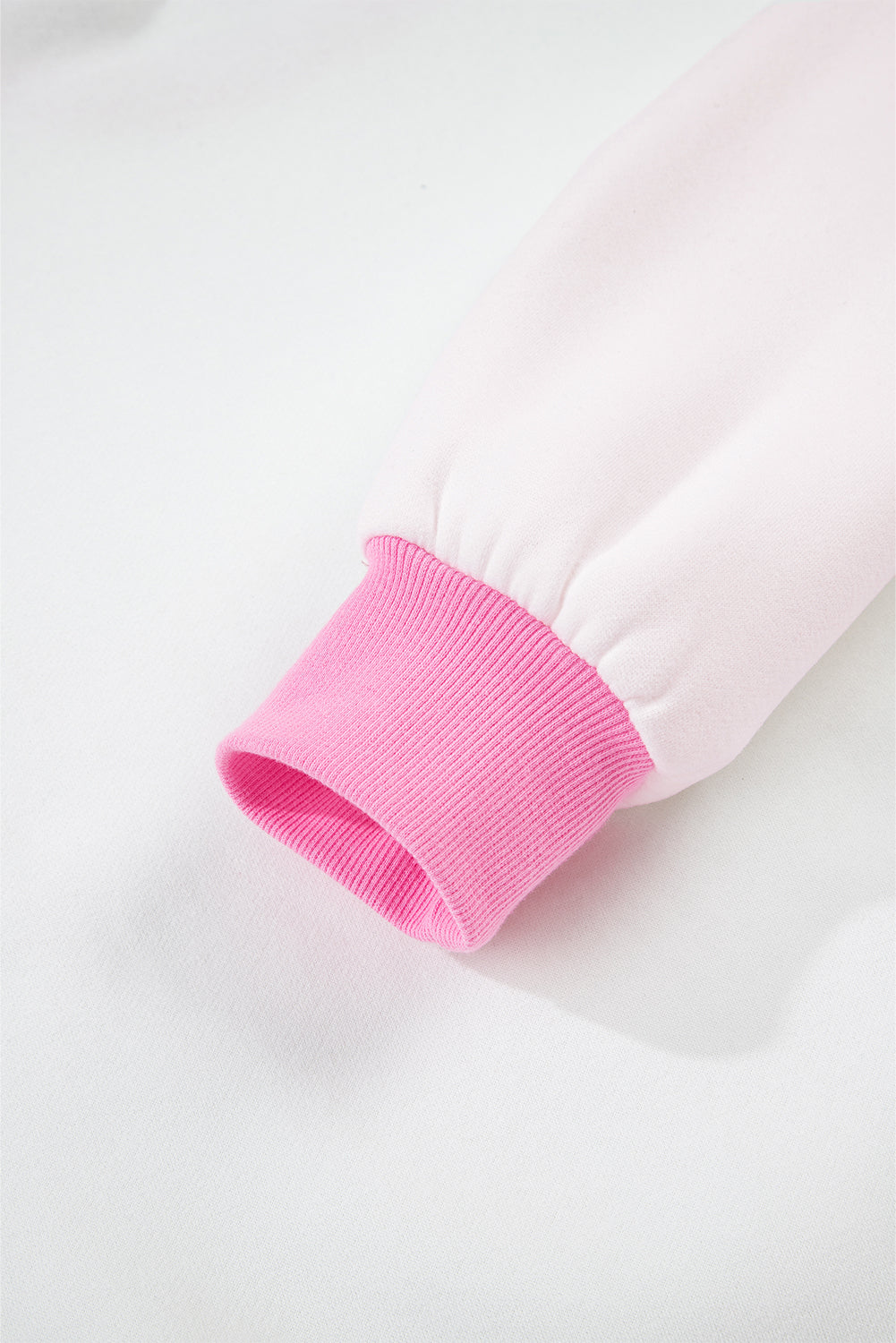Strawberry Pink Colorblock Pullover and Drawstring Shorts Set