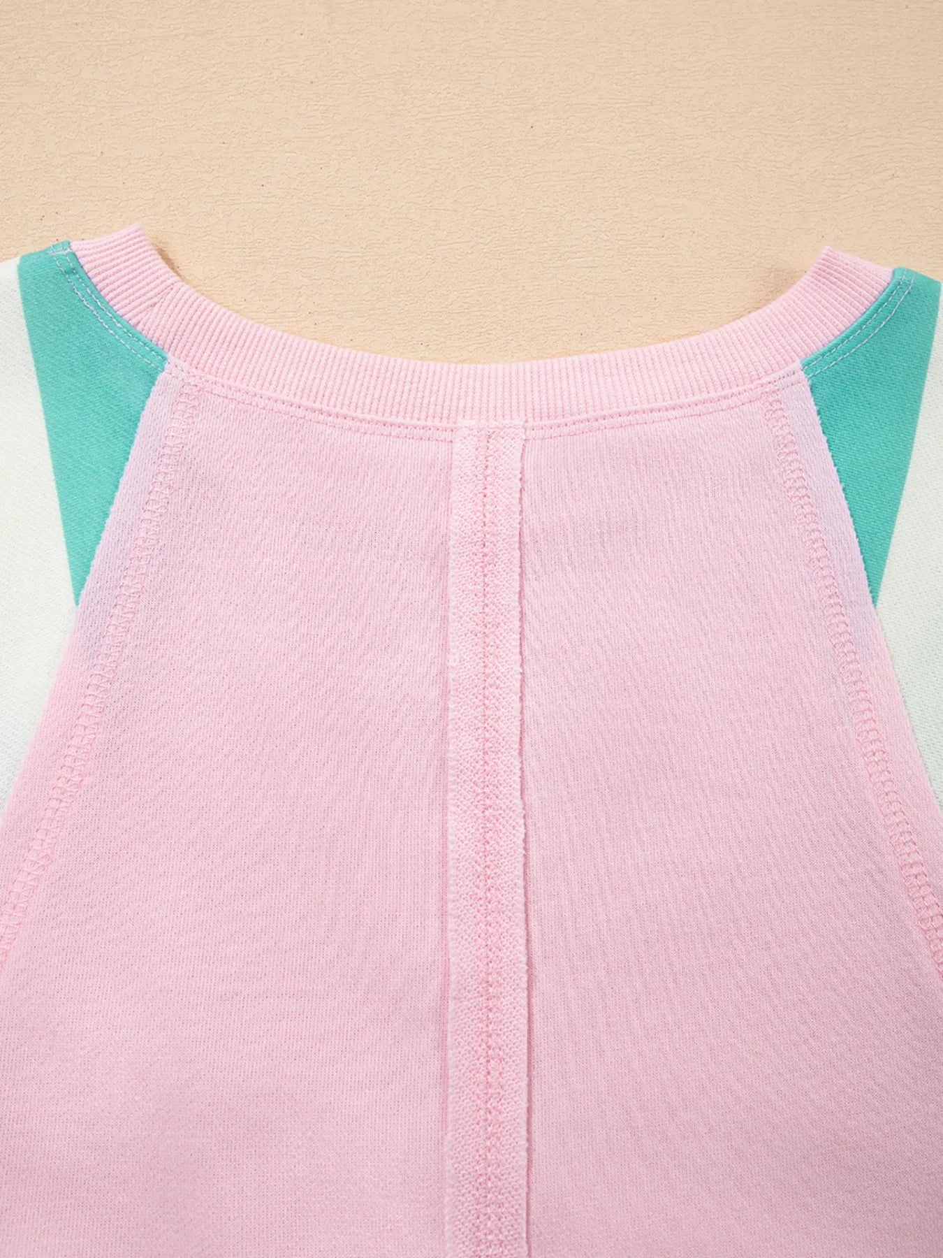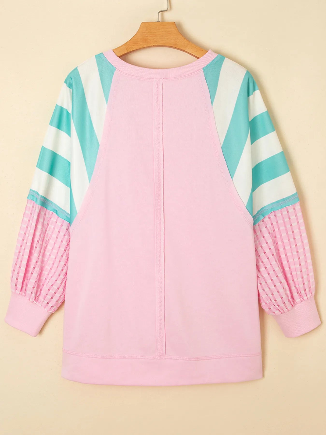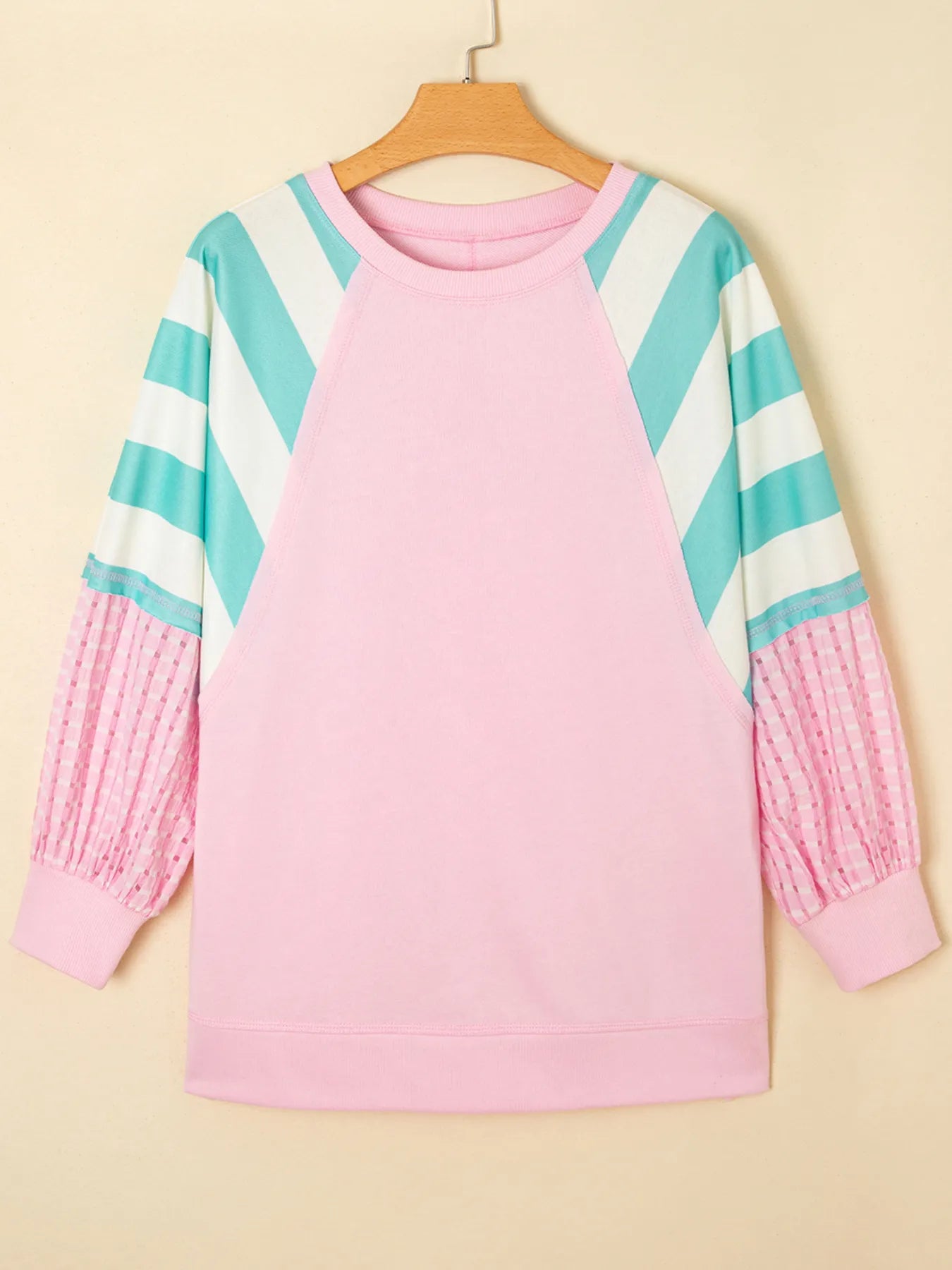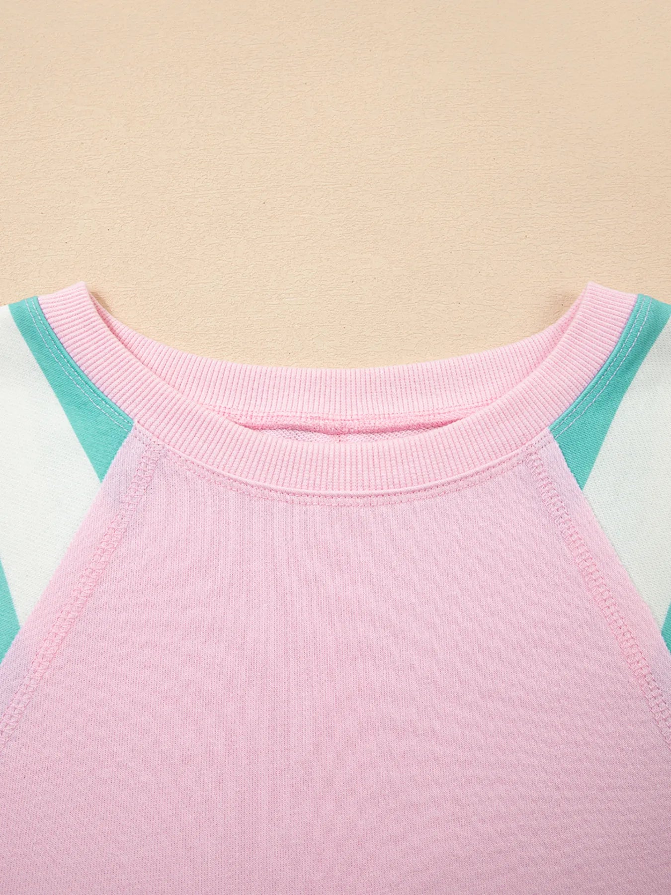 Striped Color Block Patchwork Raglan Sleeve Top with Slits
