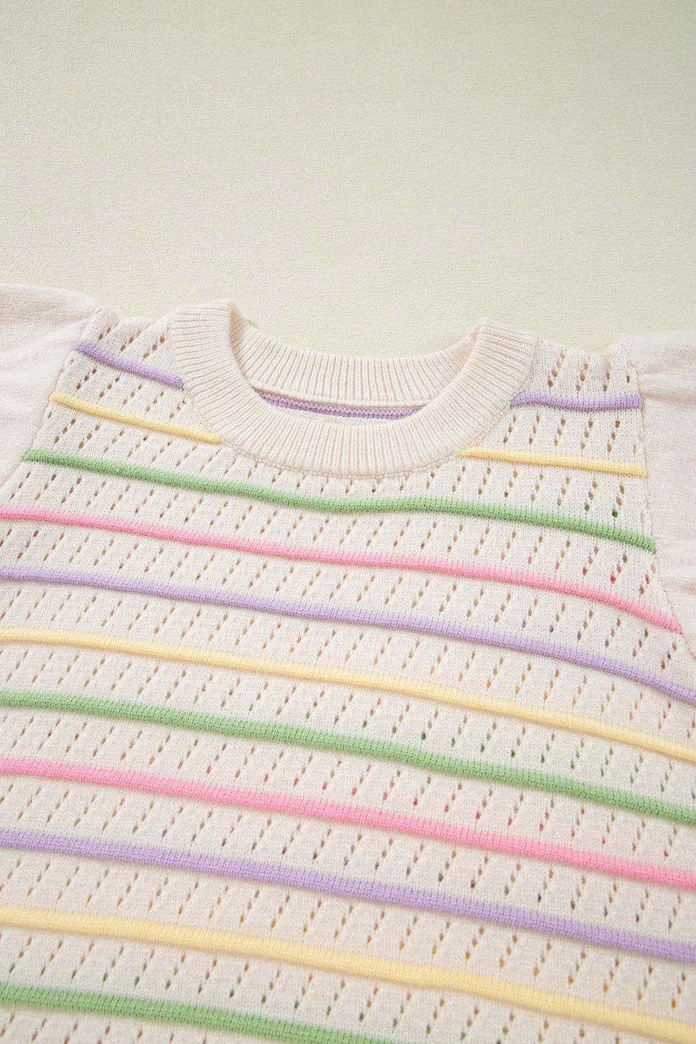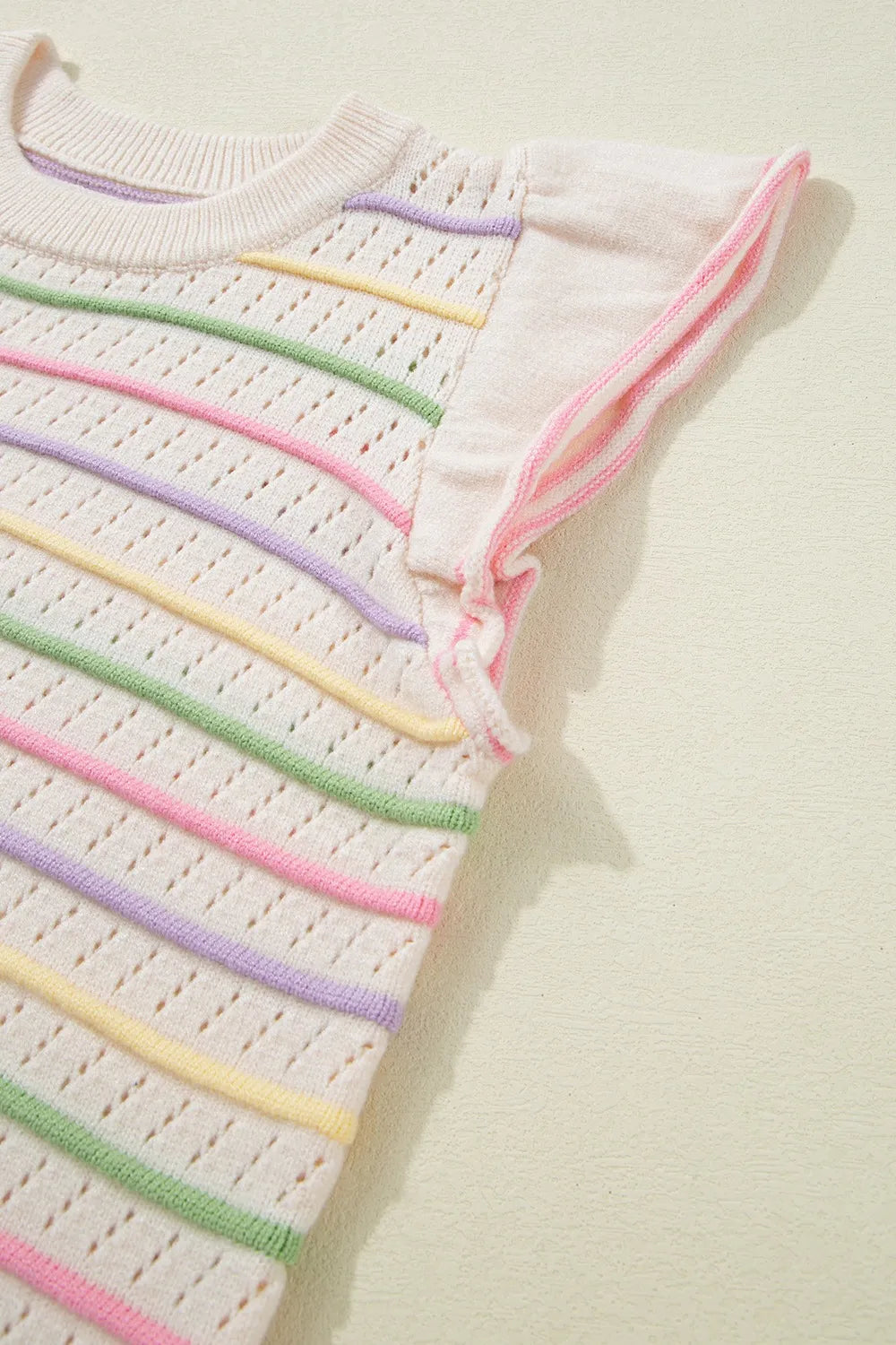 Striped Eyelet Ruffled Sleeve Sweater Sweater Vest