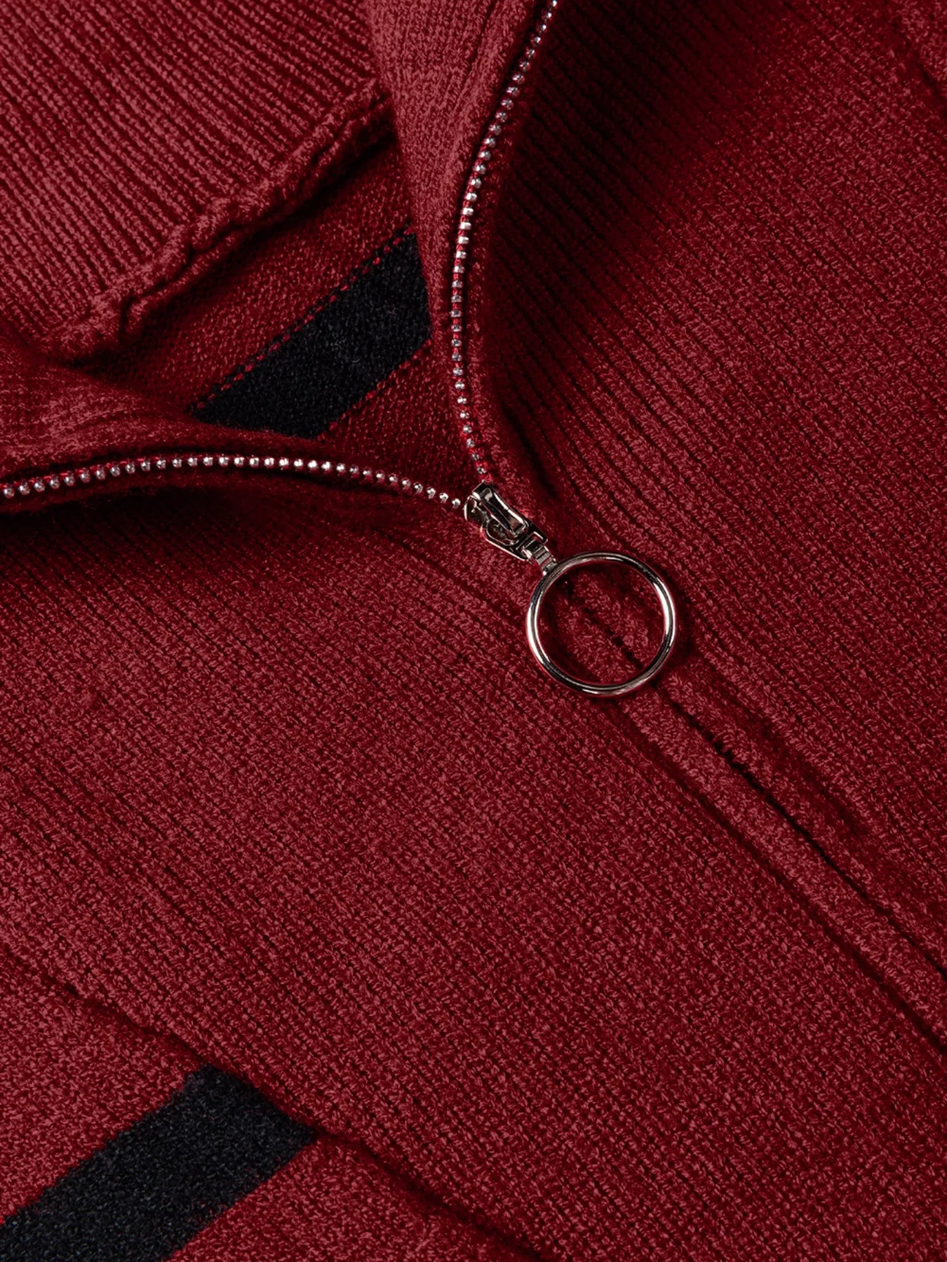 Striped O-ring Zip Collared Loose Sweater Mini Dress