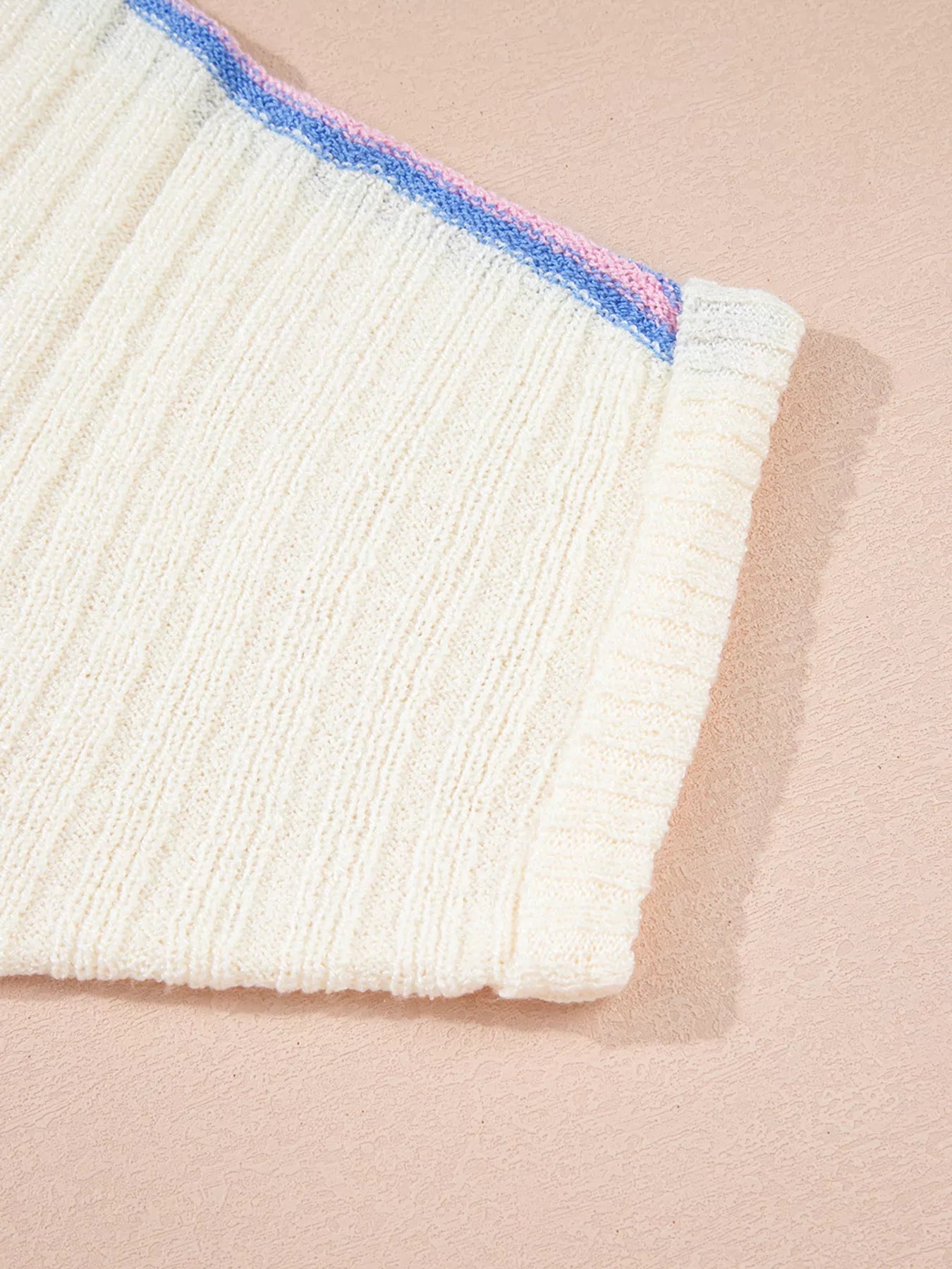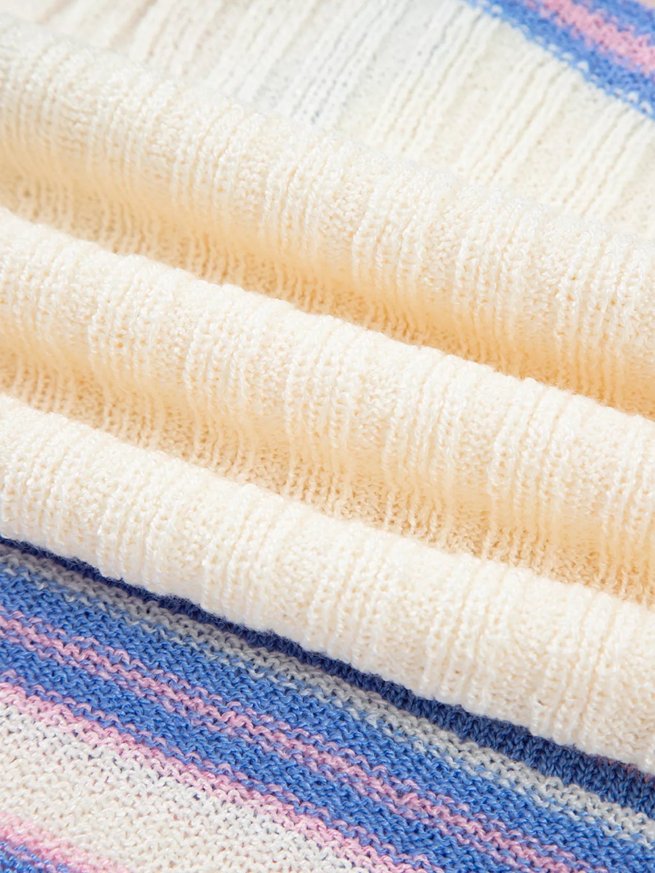 Striped V Neck Dolman Sleeve Rib Knit Oversized Sweater with Slits