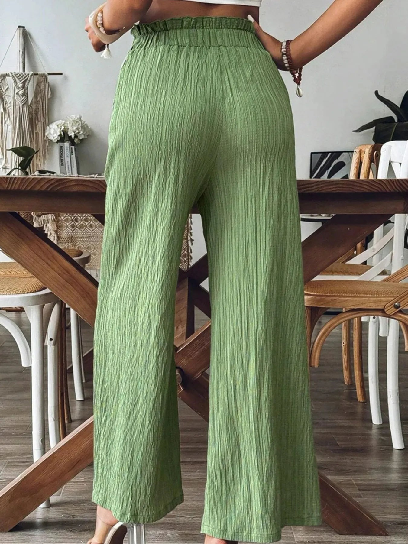 Textured Wide-Leg Pants